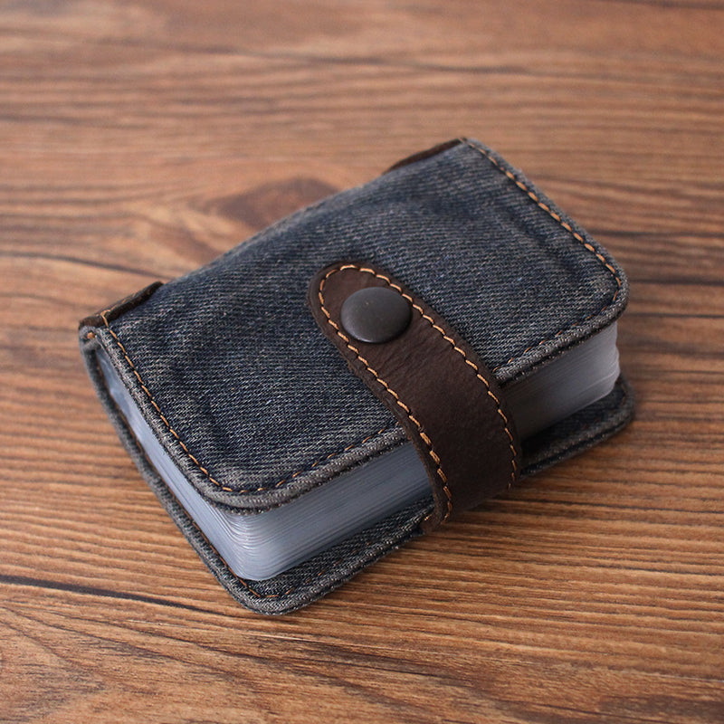 Ideal for the modern individual on the go, our denim card holders are designed to hold up to 26 cards, offering ample space for your essentials. The inclusion of a buckle for closure not only adds a touch of sophistication but also ensures the security of your belongings. Elevate your style with these charming card holders that seamlessly blend the best of both worlds – a nod to the past in a contemporary, functional accessory.