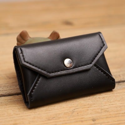 Handmade Women Leather Card Holders Envelope Black Card Holder Coin Wallet For Women