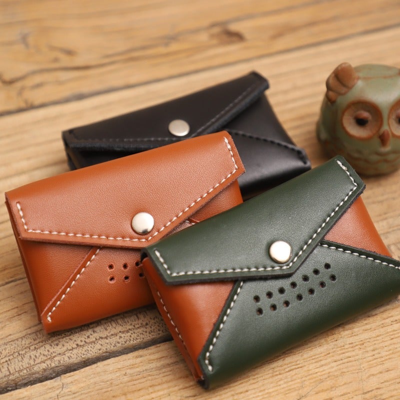 Handmade Women Leather Card Holders Envelope Card Holder Coin Wallet For Women
