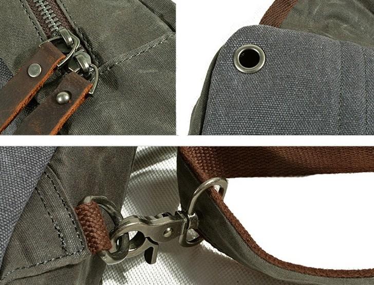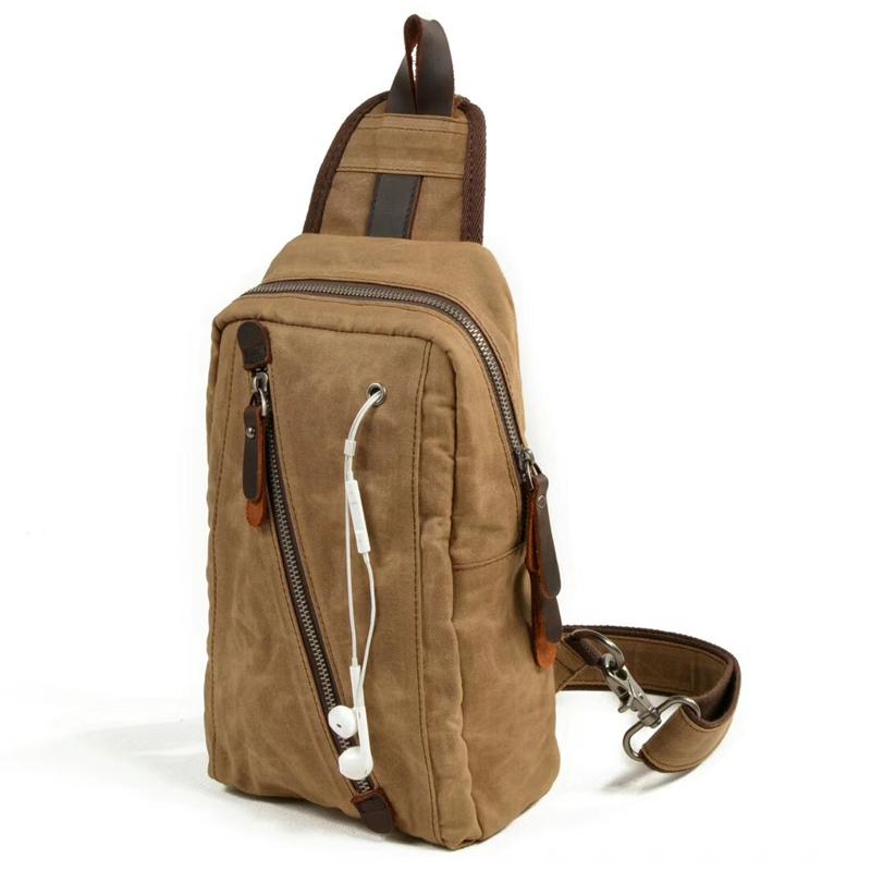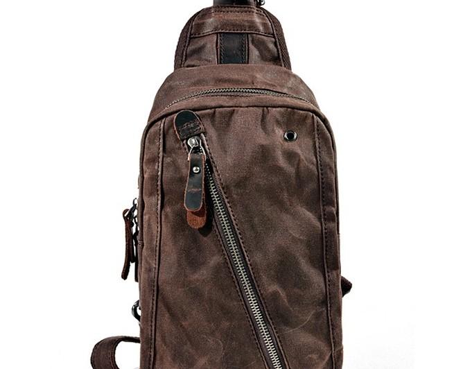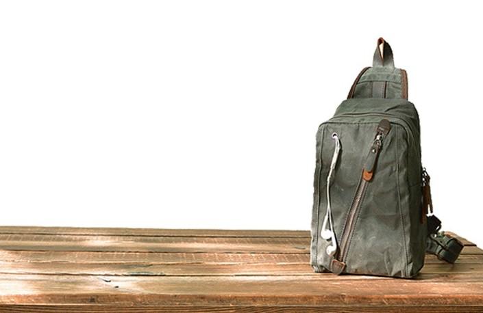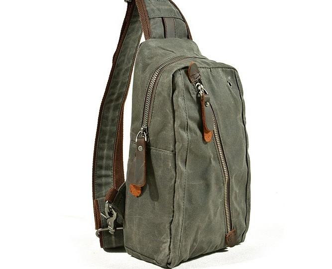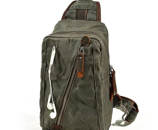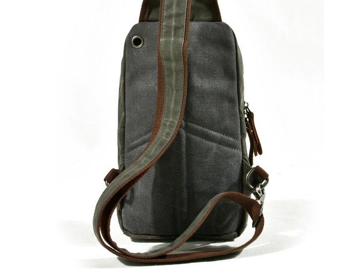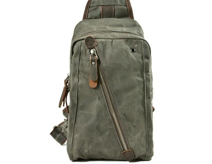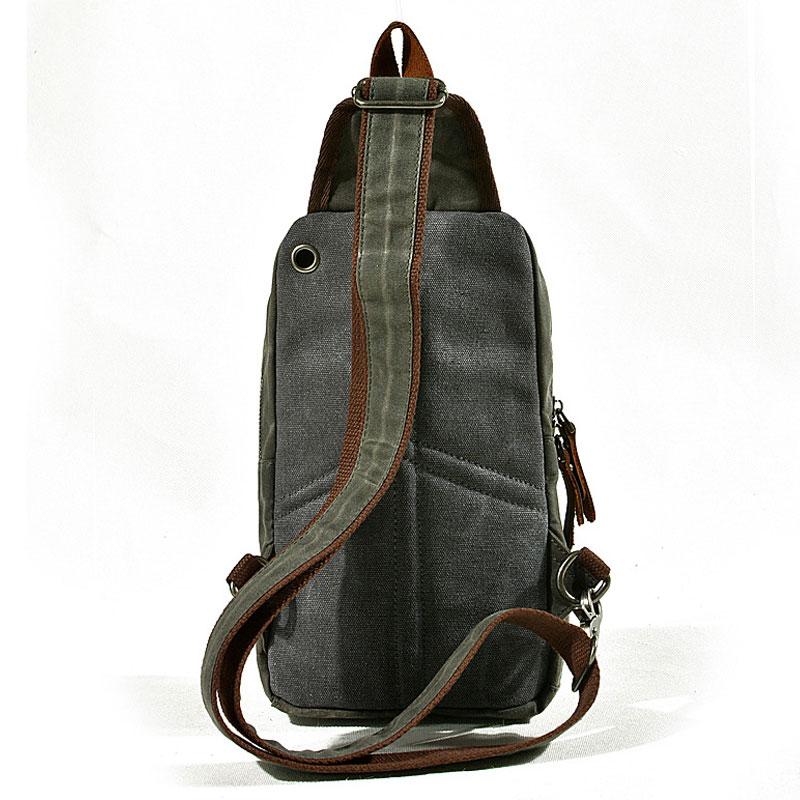 Design: Cool Gray Canvas Leather Mens Sling Bag Chest Bag One Shoulder Pack for men