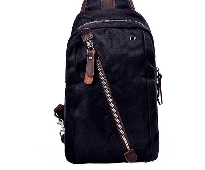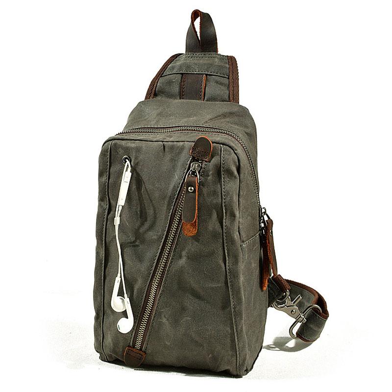 Style: Cool Gray Canvas Leather Mens Sling Bag Chest Bag One Shoulder Pack for men
