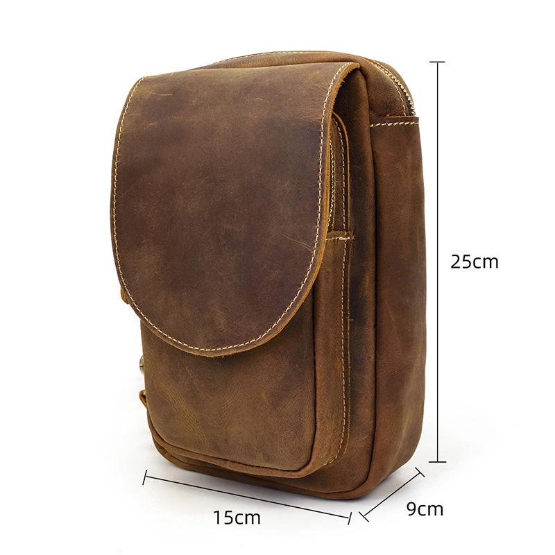 Style: Dark Brown Leather Men's 8 inches Brown Sling Bag Chest Bag One Shoulder Backpack For Men