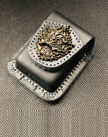 Black Handmade Leather Mens Monster Zippo Lighter Holders Lighter Case For Men