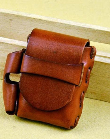 Style: Cool Handmade Leather Mens Cigarette Case with Belt Loop Lighter Holder for Men