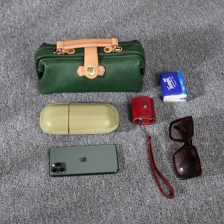 Design: Womens Green Leather Mini Doctor Handbag Purses Classic Green Doctor Crossbody Purses for Women