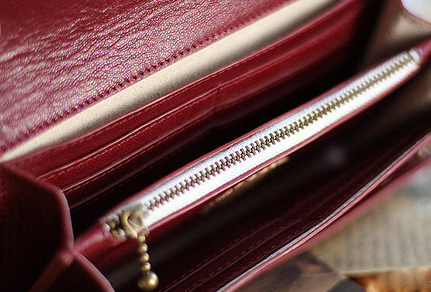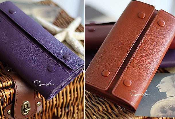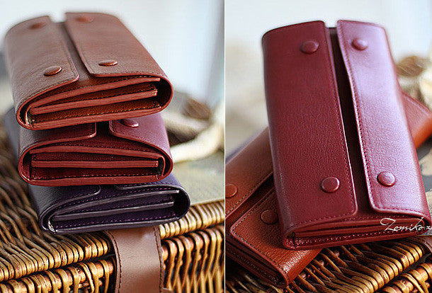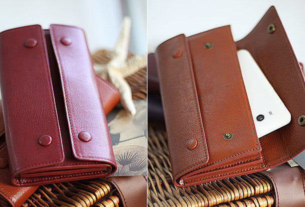 This is Handmade vintage rustic red purple orange leather long iphone bifold wallet for women/lady girl.The wallet is bifold,color is red ,dark orange and purple There are 3 full size bill slots,12 ID slots,1 ?zip coin holder~Hand-made in the traditional method with punched holes and saddle stitching by h