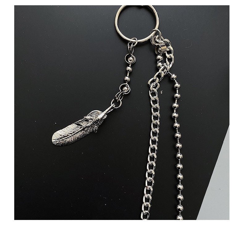 Design: Beaded Wallet Chain for Men Ball Wallet Chain Double Wallet Chain with Feather Charm