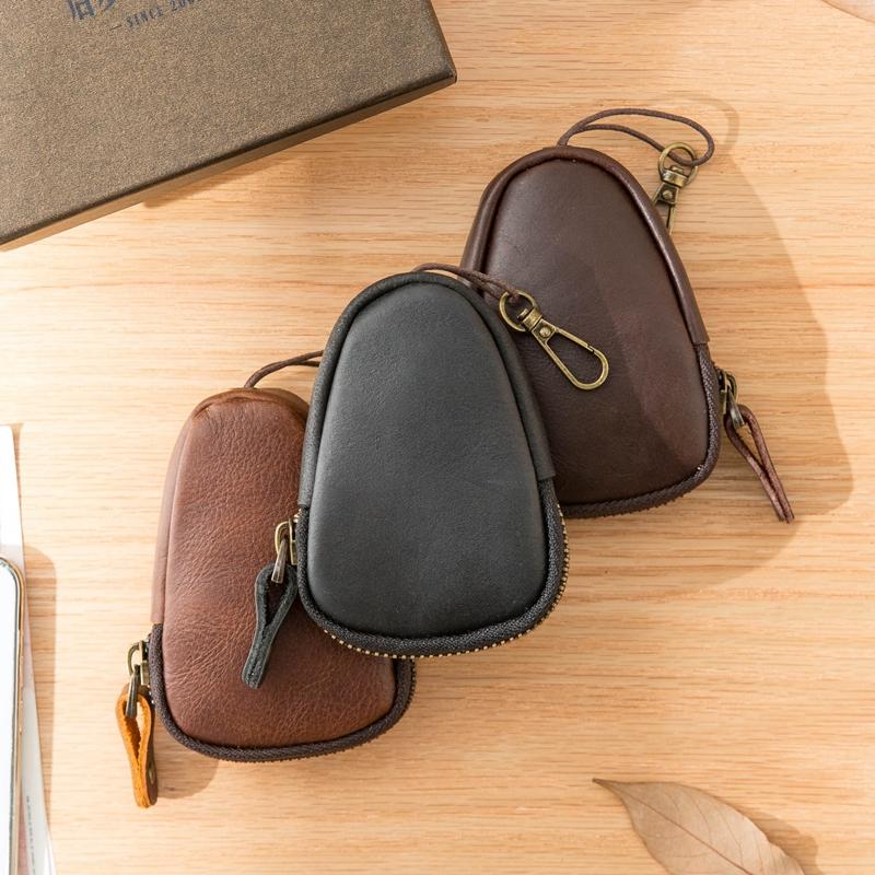 Style: Black Handmade Leather Mens Brown Small Wallets Car Key Wallet Dark Brown Coin Purse For Men