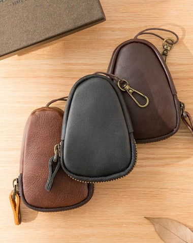 Design: Black Handmade Leather Mens Brown Small Wallets Car Key Wallet Dark Brown Coin Purse For Men