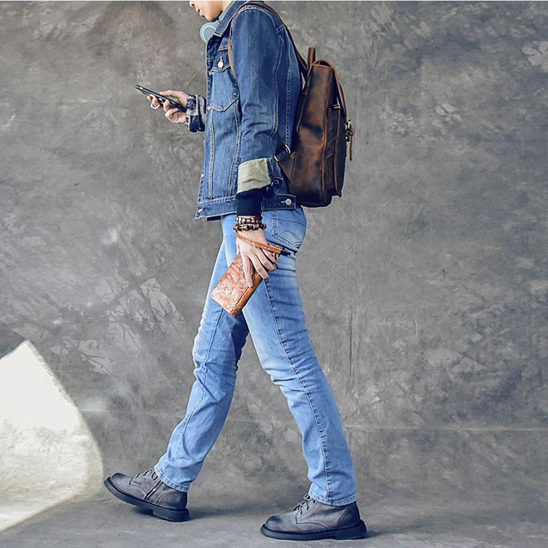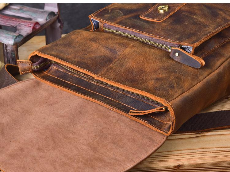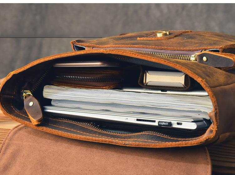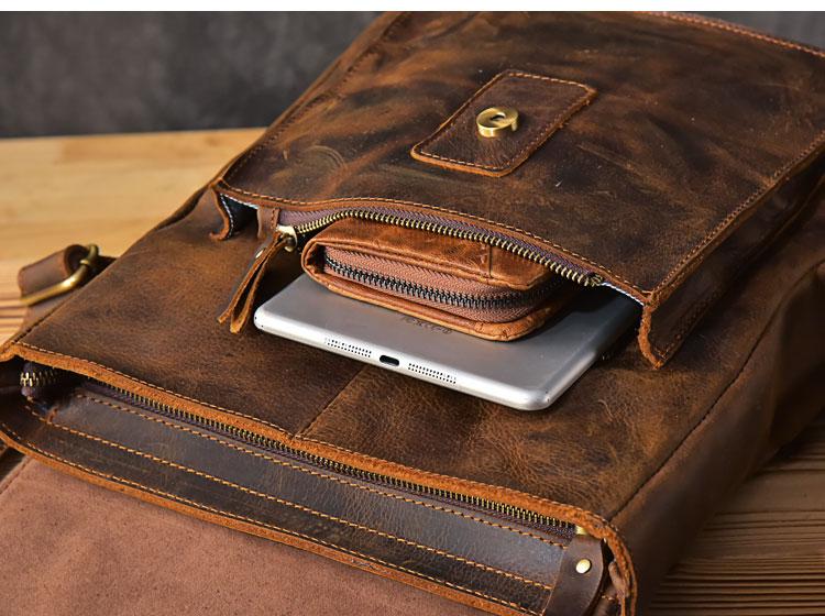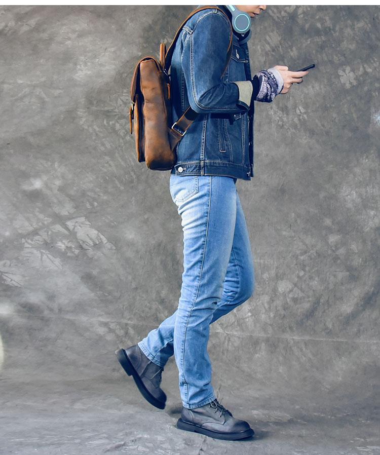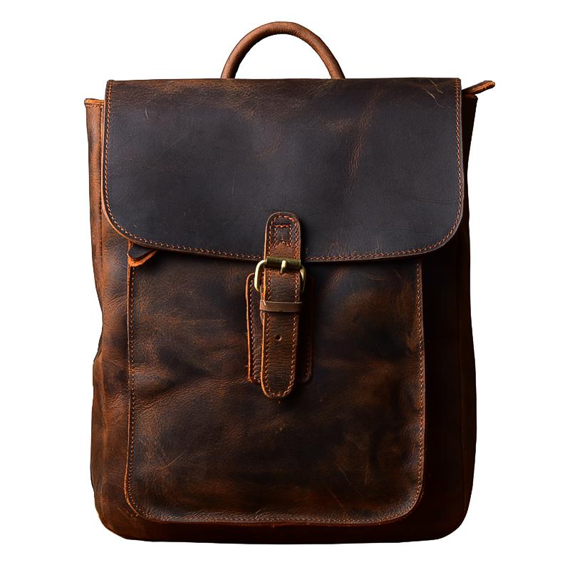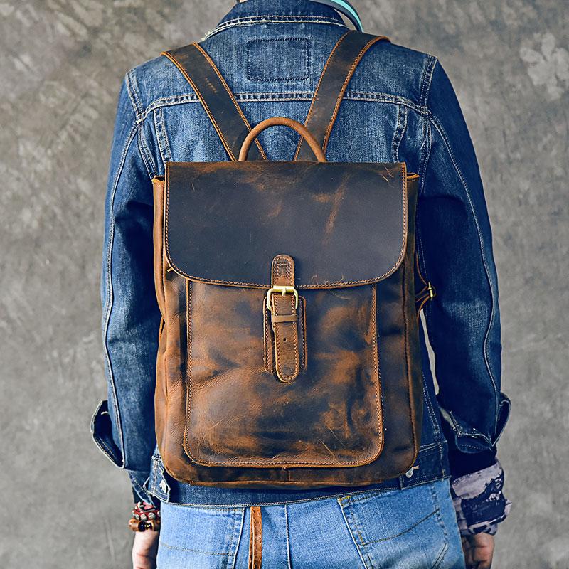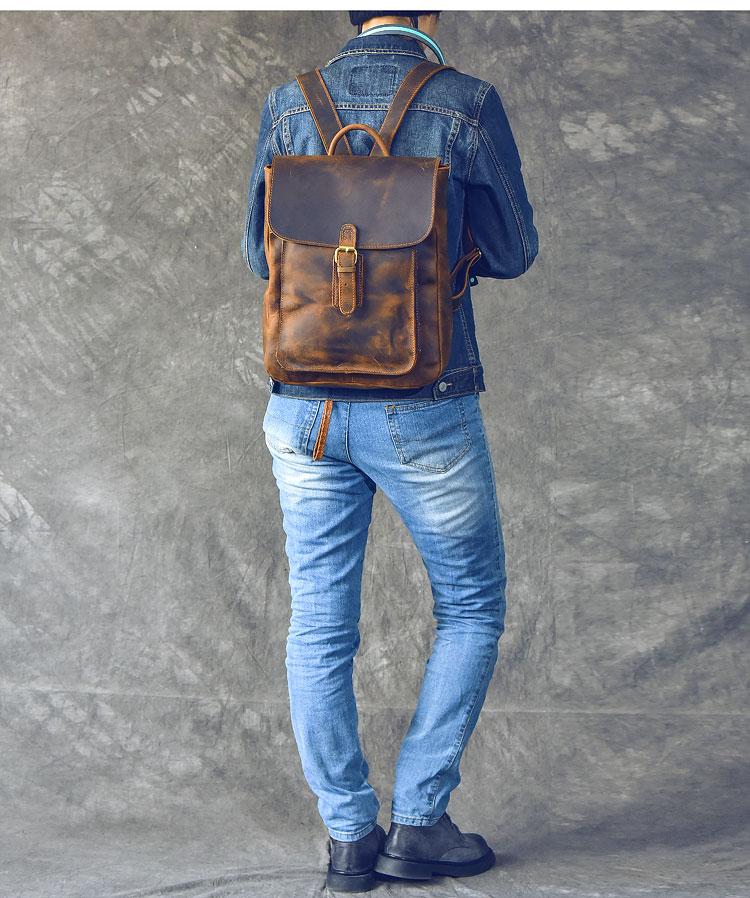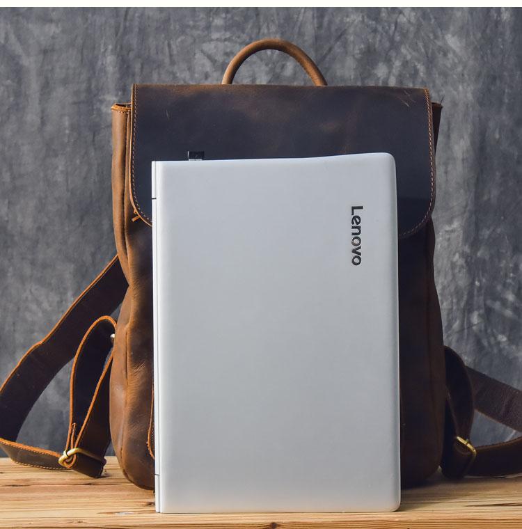 Design: Black Leather Mens 13" Handbag Travel Backpack Light Brown College Backpack Shoulder Bag for Men