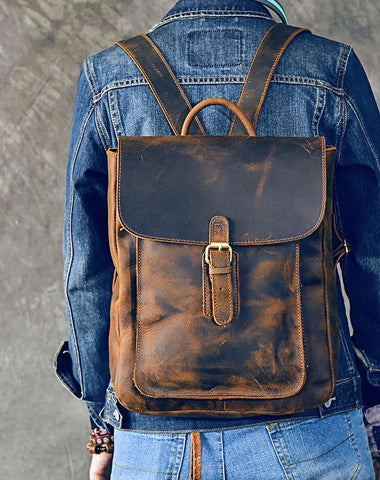Style: Black Leather Mens 13" Handbag Travel Backpack Light Brown College Backpack Shoulder Bag for Men