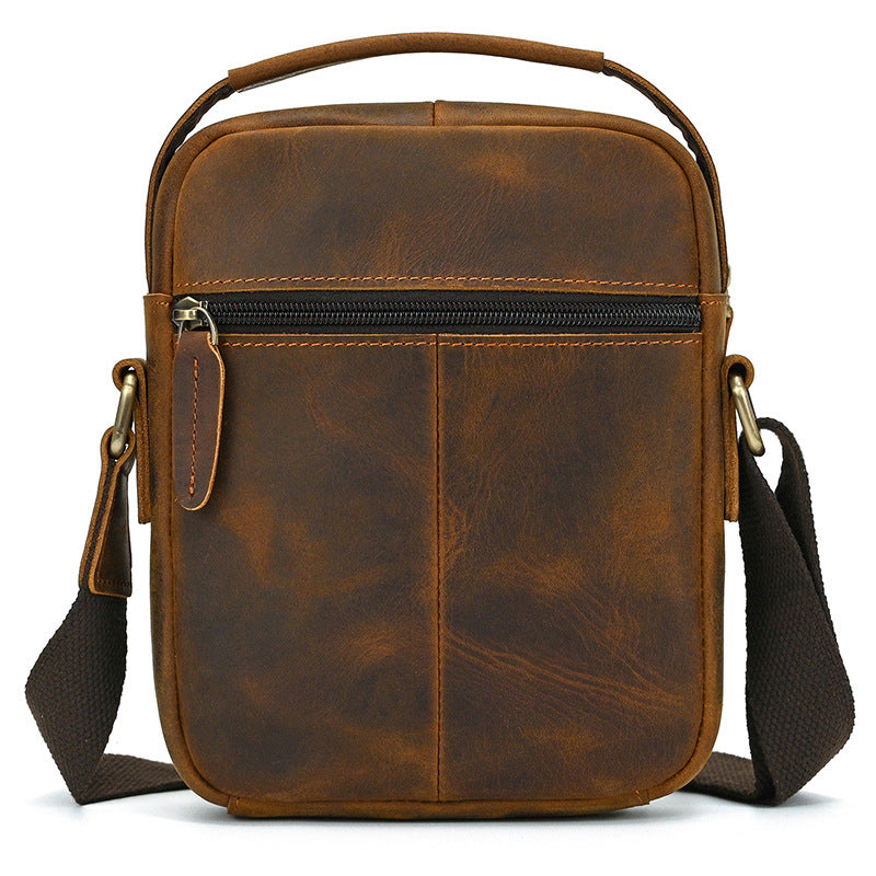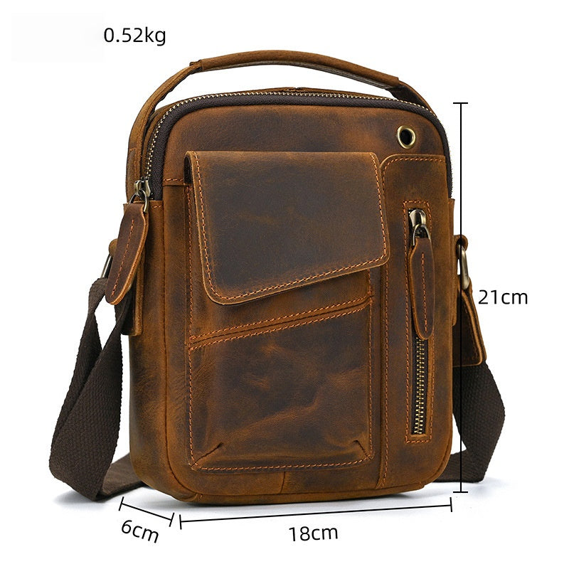 Discover the perfect blend of urban functionality and rugged style with our Vertical Crossbody Bag, a compact yet highly practical accessory designed for the modern man on the move. Expertly crafted from premium full-grain crazy horse leather in a rich vintage brown hue, this versatile Vertical Crossbody Bag measures 21cm x 18cm x 6cm, offering an ideal balance of slim profile and substantial storage capacity. With its intelligent multi-compartment design and comfortable crossbody wearability, this durable Vertical Crossbody Bag keeps your essentials organized, secure, and easily accessible throughout your day.