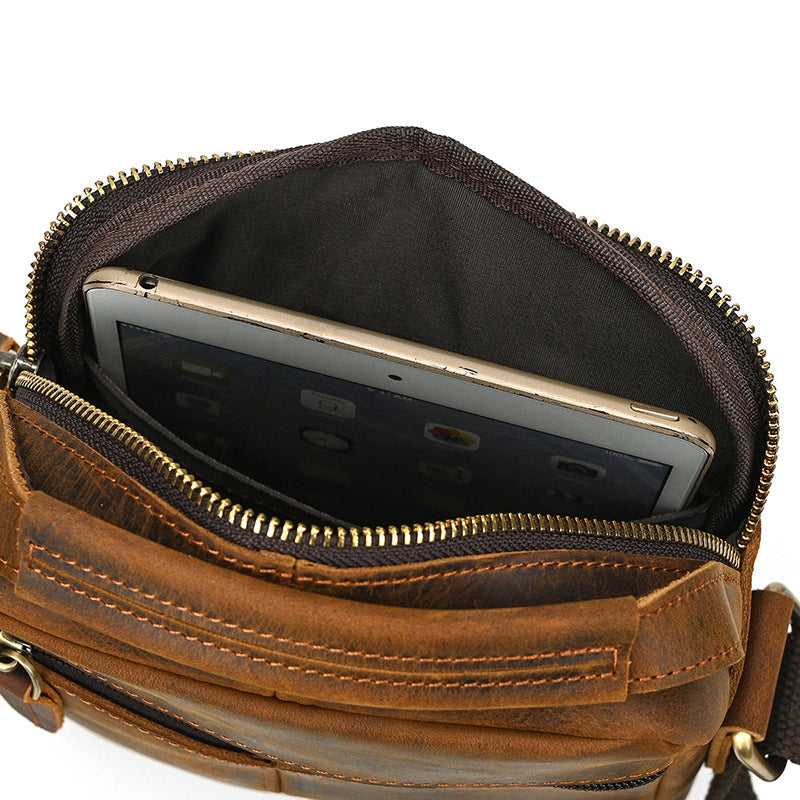 Vertical Crossbody Bag for Men | Vintage Crazy Horse Leather Multi-Pocket Organizer
