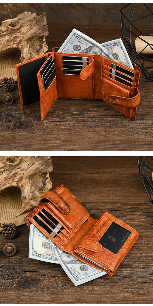 Engineered for both convenience and security, this sophisticated Leather Wallet with Buckle for Men utilizes a smart tri-fold design that maximizes organization without unnecessary bulk. The sturdy leather buckle closure ensures your belongings remain safely enclosed, while the premium full-grain leather develops a distinctive patina over time, giving this Buckle Mens Wallet That Holds A Lot of Cards a unique character that reflects your journey. Whether you're dressing for the office, traveling, or everyday adventures, this wallet delivers both practical functionality and timeless style.