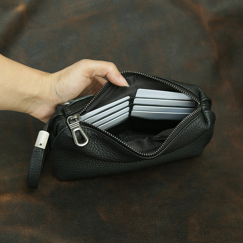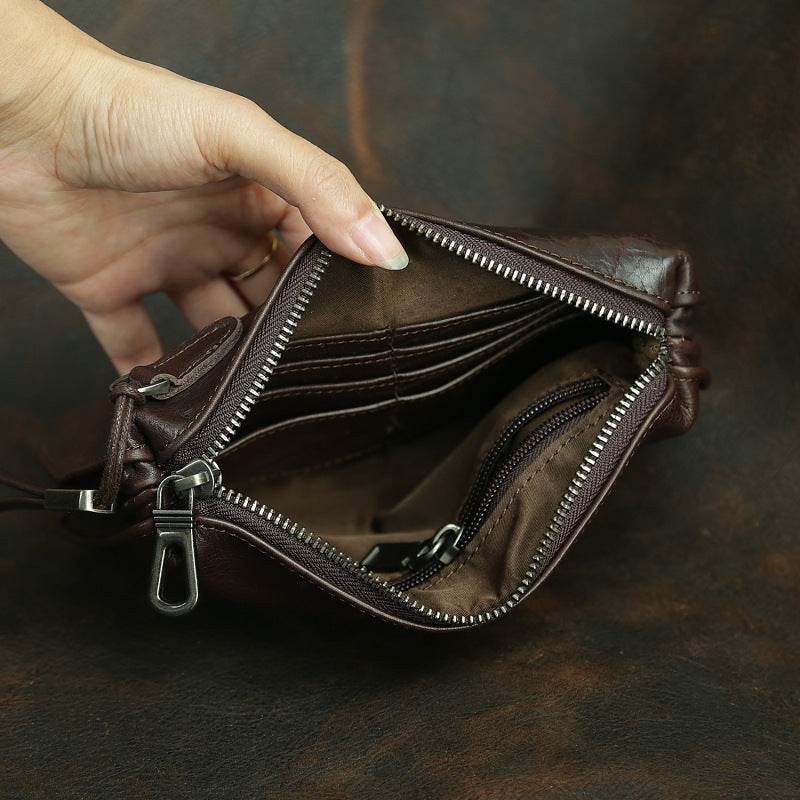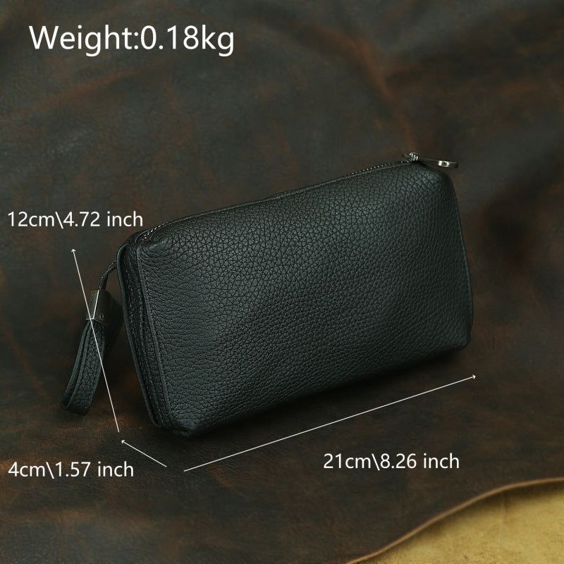 Designed for convenience and versatility, this Clutch Leather Wallet can be effortlessly carried as a hand-held clutch, tucked under the arm for a polished look, or worn around the wrist for hands-free mobility. Despite its minimalist structure, it offers surprising capacity, easily accommodating essentials like a cigarette case, car keys, key fobs, and other daily necessities. Crafted from premium leather that ages gracefully, this wallet is an ideal choice for those who appreciate understated elegance and multifunctional design.