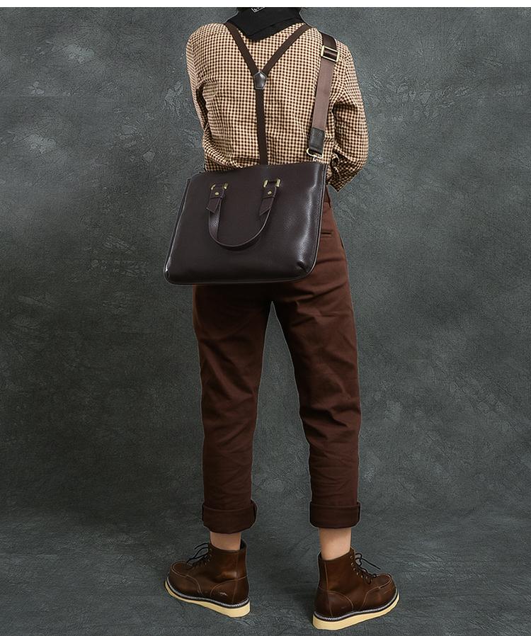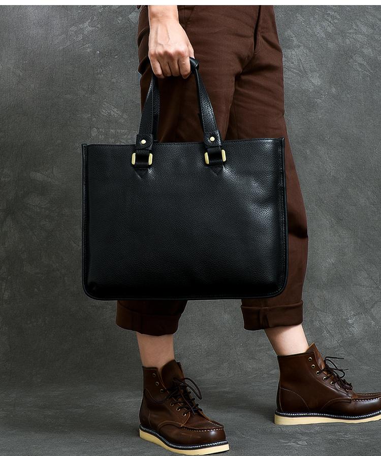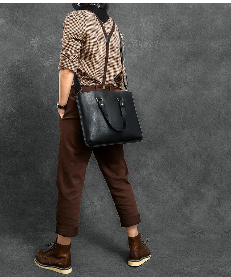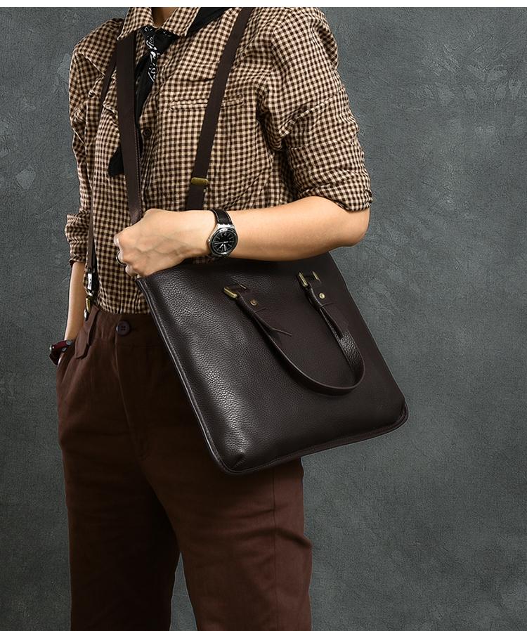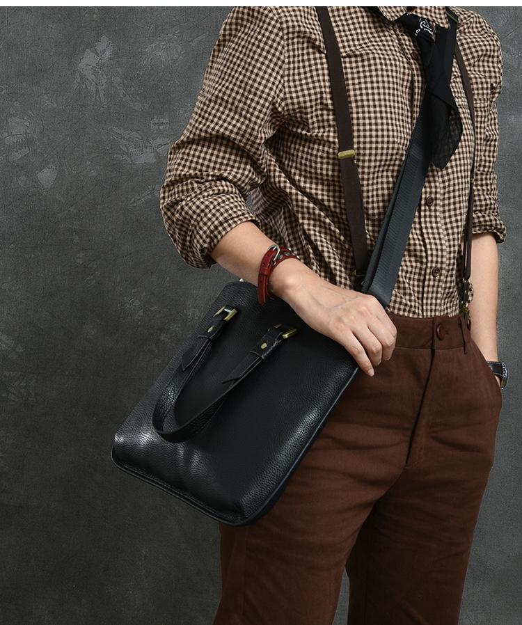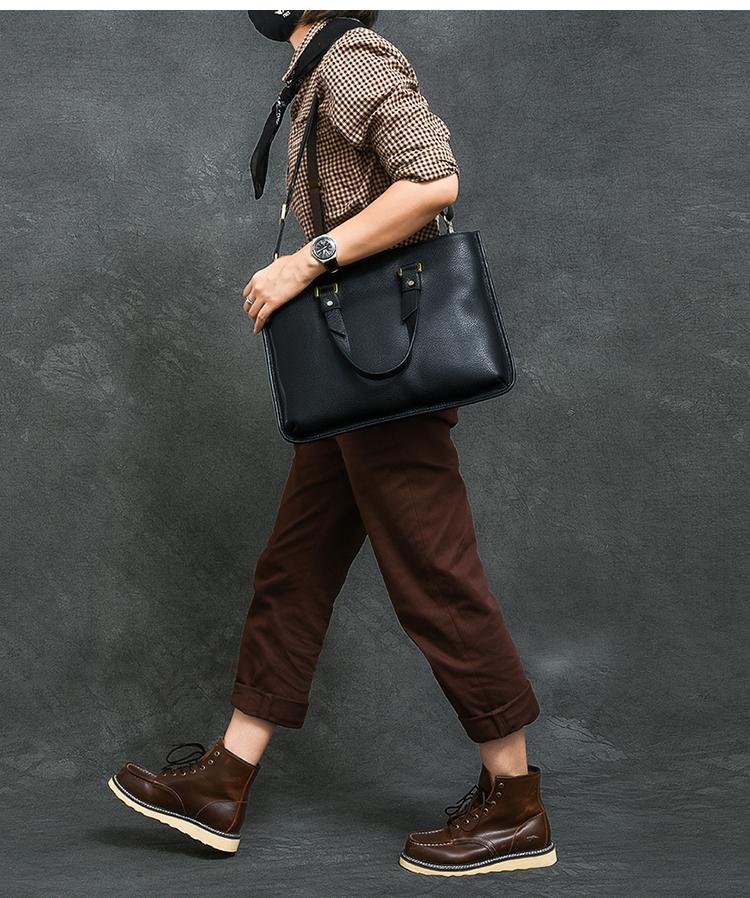 Style: Canvas Leather Mens Womens 16" Black Briefcase Side Bag Brown Messenger Bag Shoulder Bag For Men