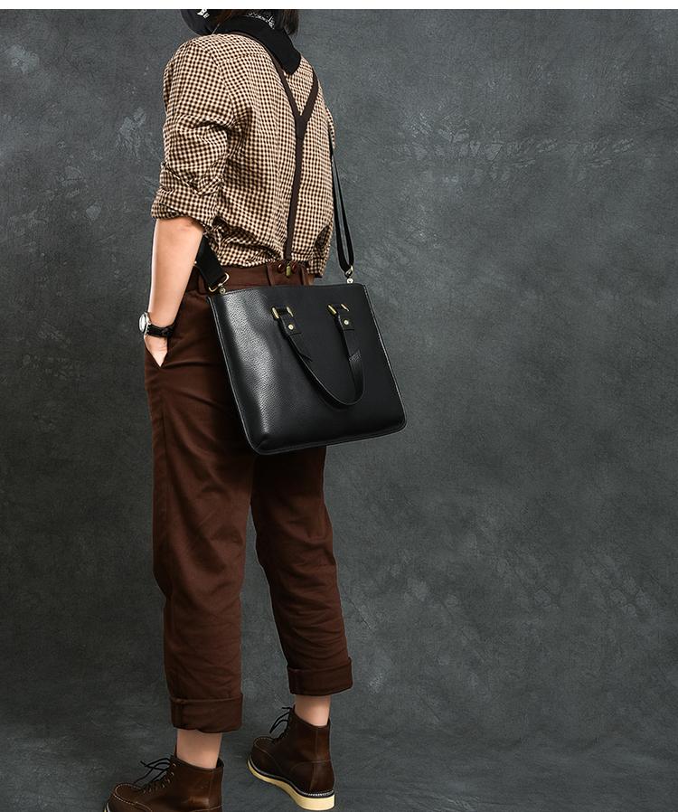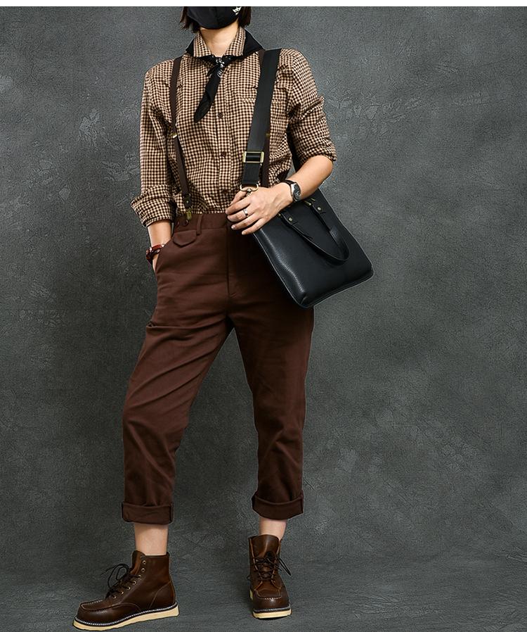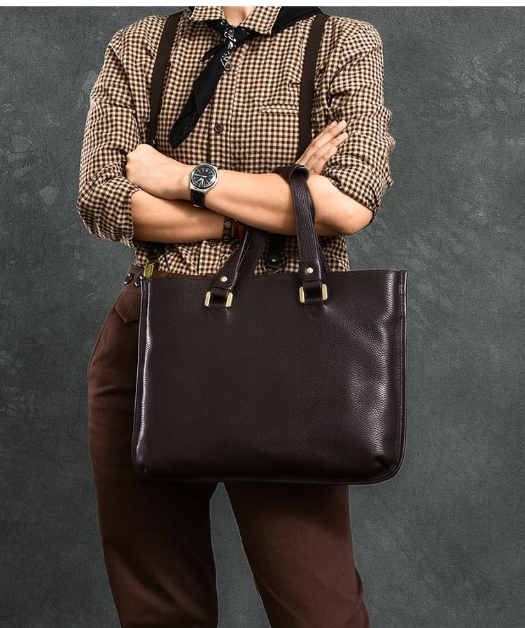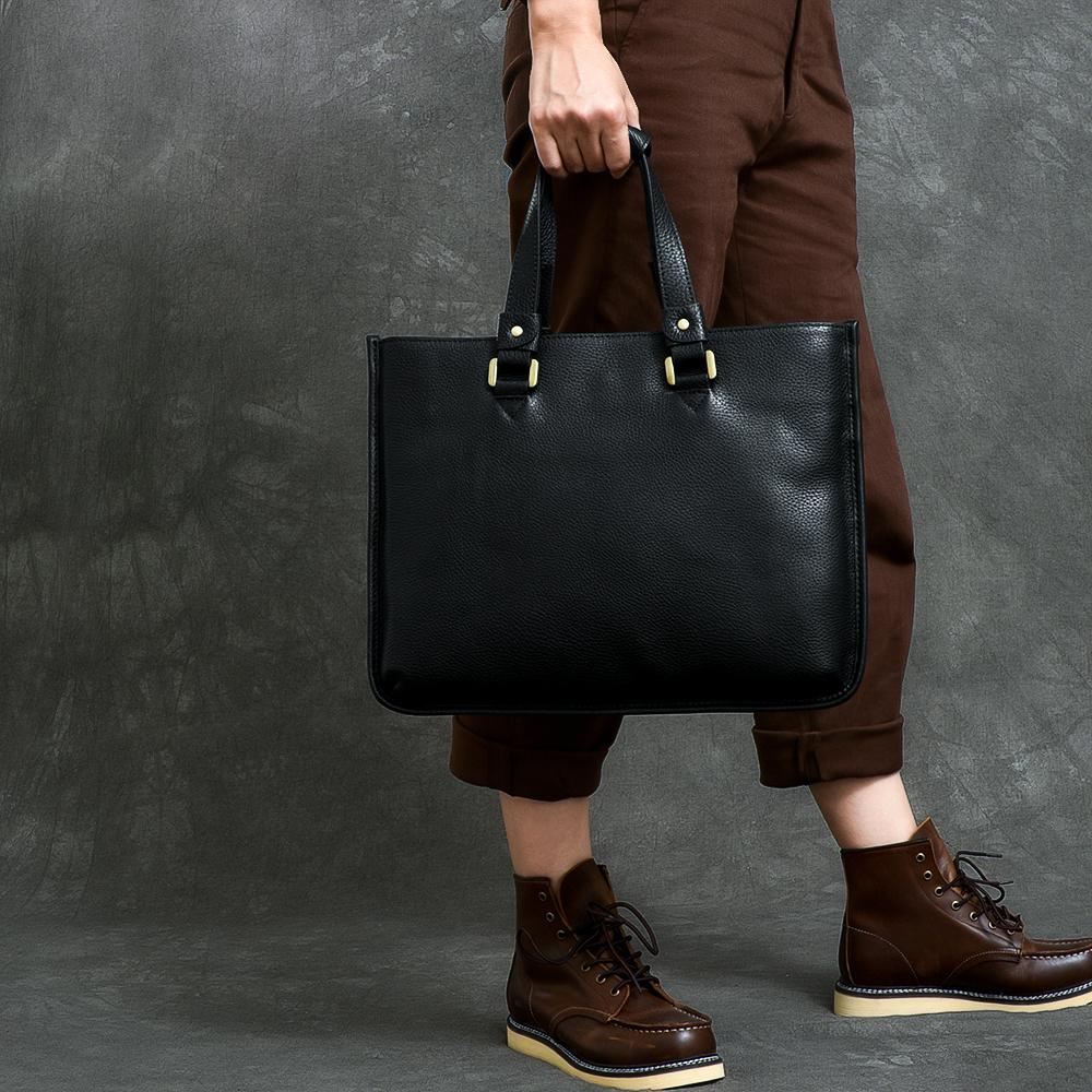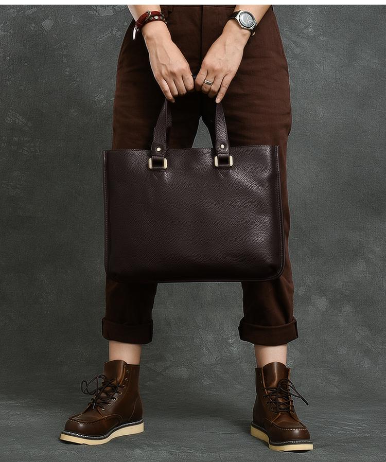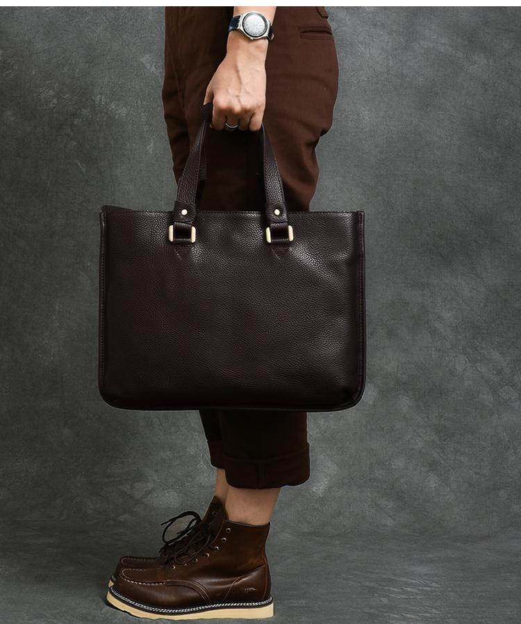 Style: Canvas Leather Mens Womens 16" Black Briefcase Side Bag Brown Messenger Bag Shoulder Bag For Men