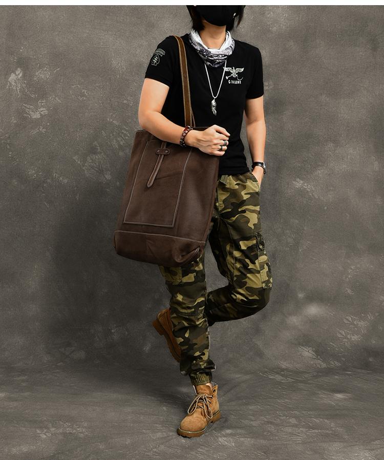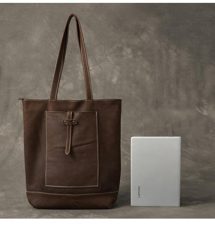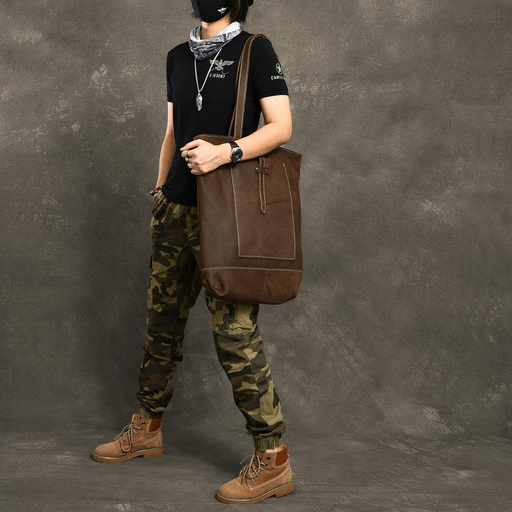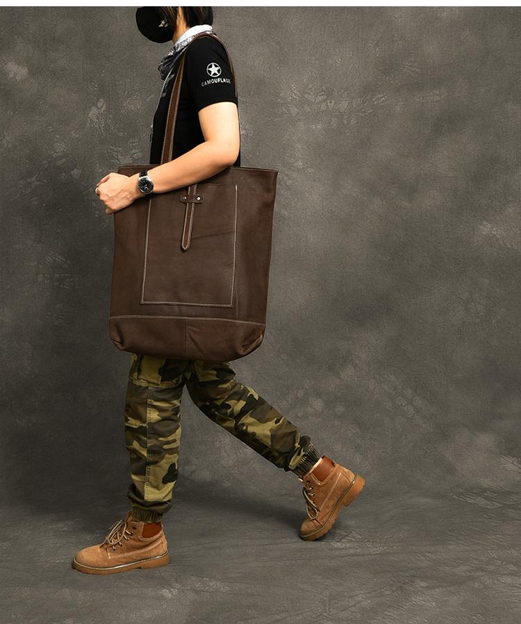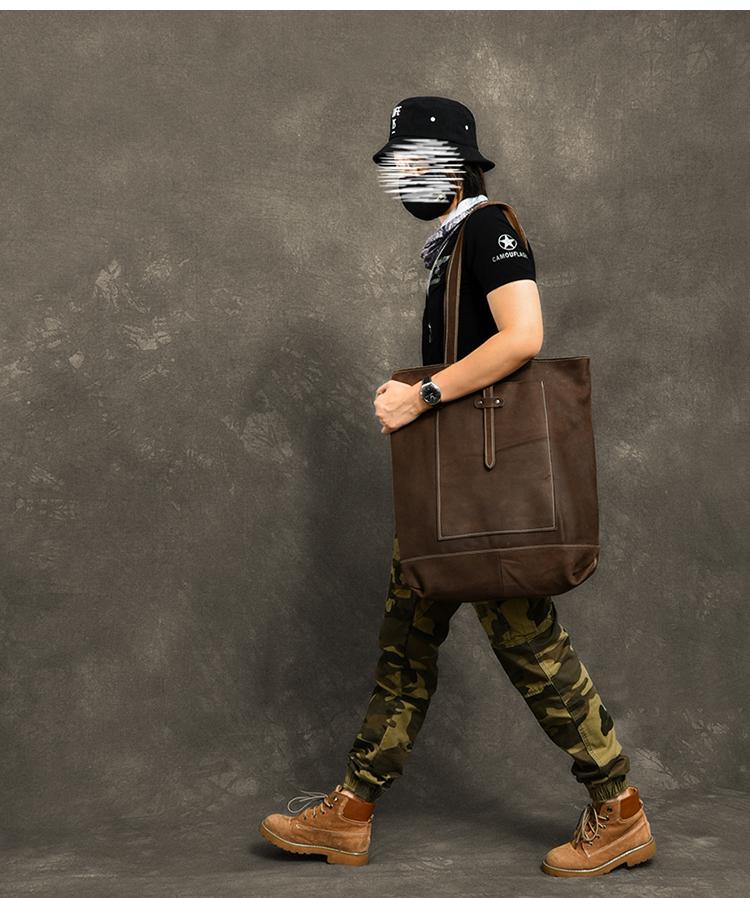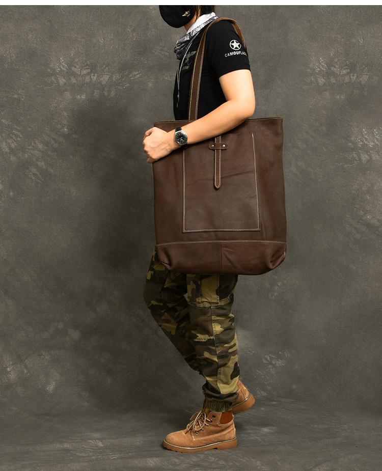 Design: Canvas Leather Mens Womens 19" Brown Large Shoulder Bag Tote Bag Side Bag For Men