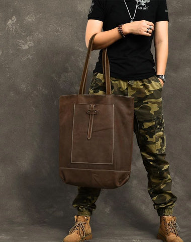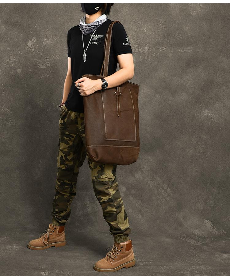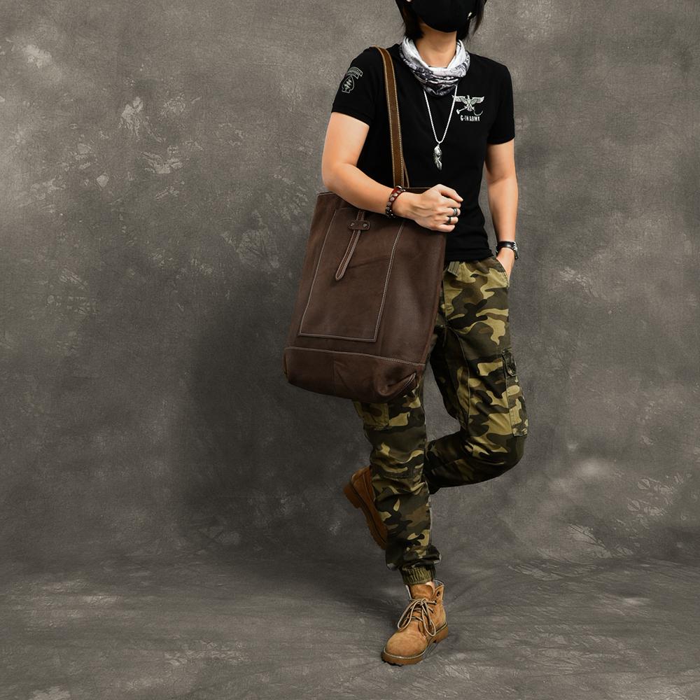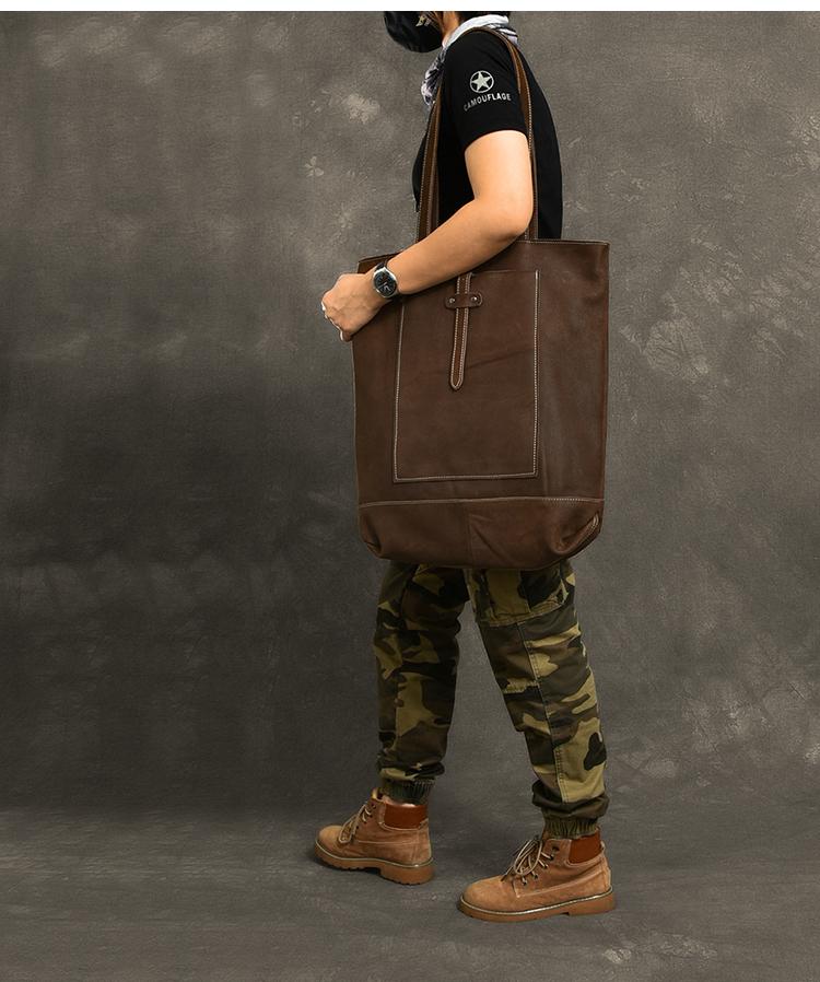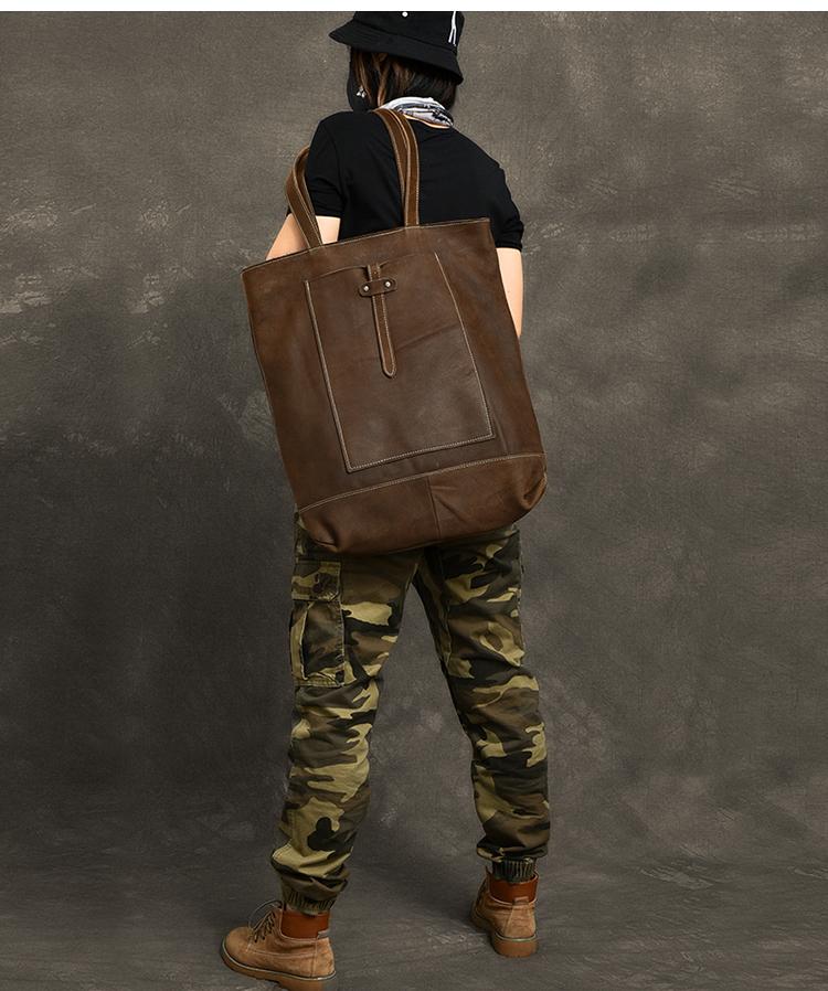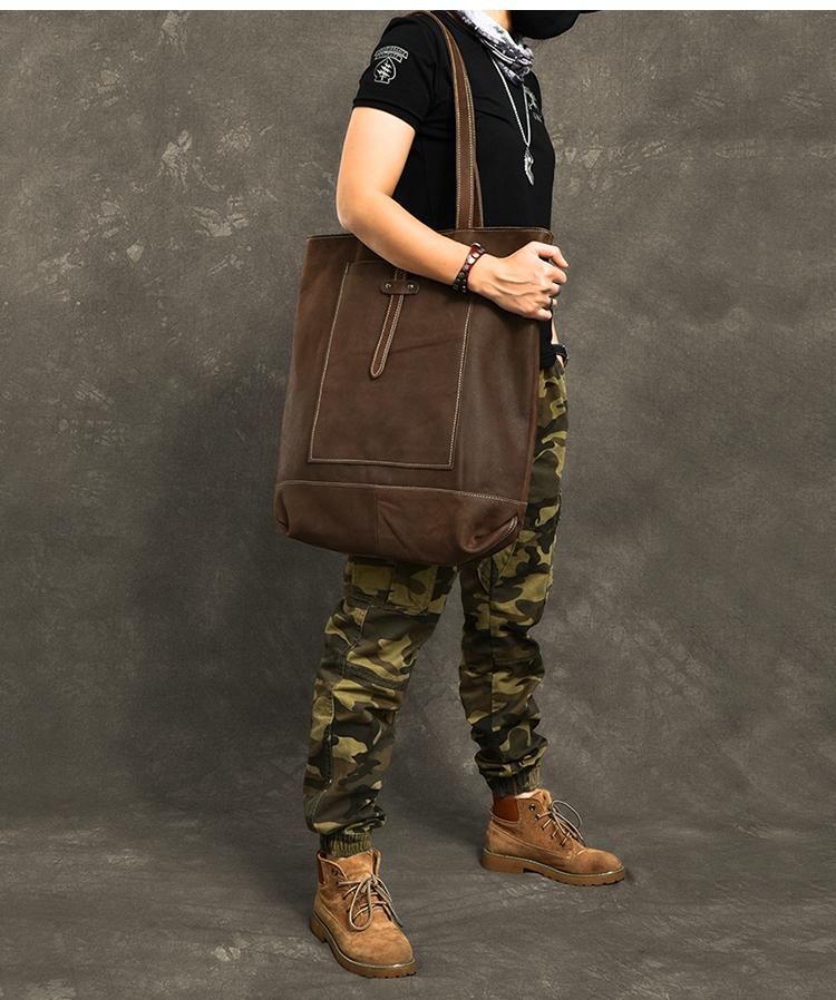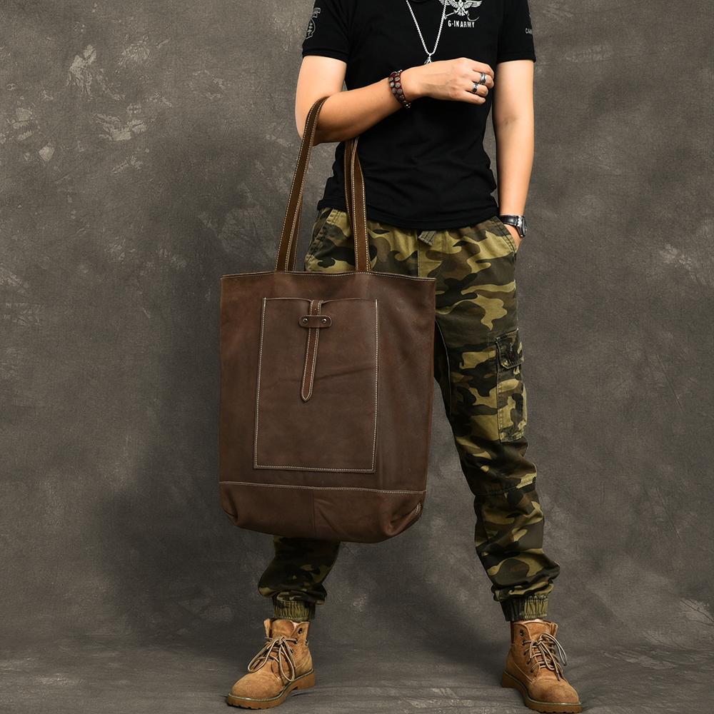 Design: Canvas Leather Mens Womens 19" Brown Large Shoulder Bag Tote Bag Side Bag For Men