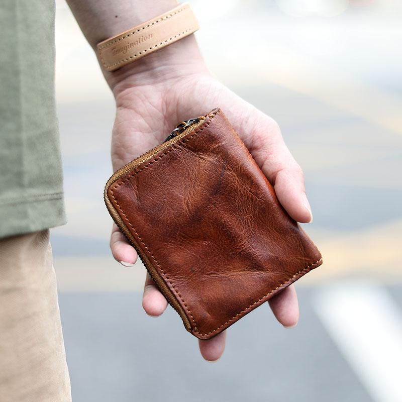 Design: Cool Black Leather Mens Card billfold Wallet Bifold SMall License Wallet Brown Front Pocket Wallets For Men