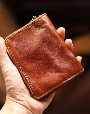 Style: Cool Black Leather Mens Card billfold Wallet Bifold SMall License Wallet Brown Front Pocket Wallets For Men