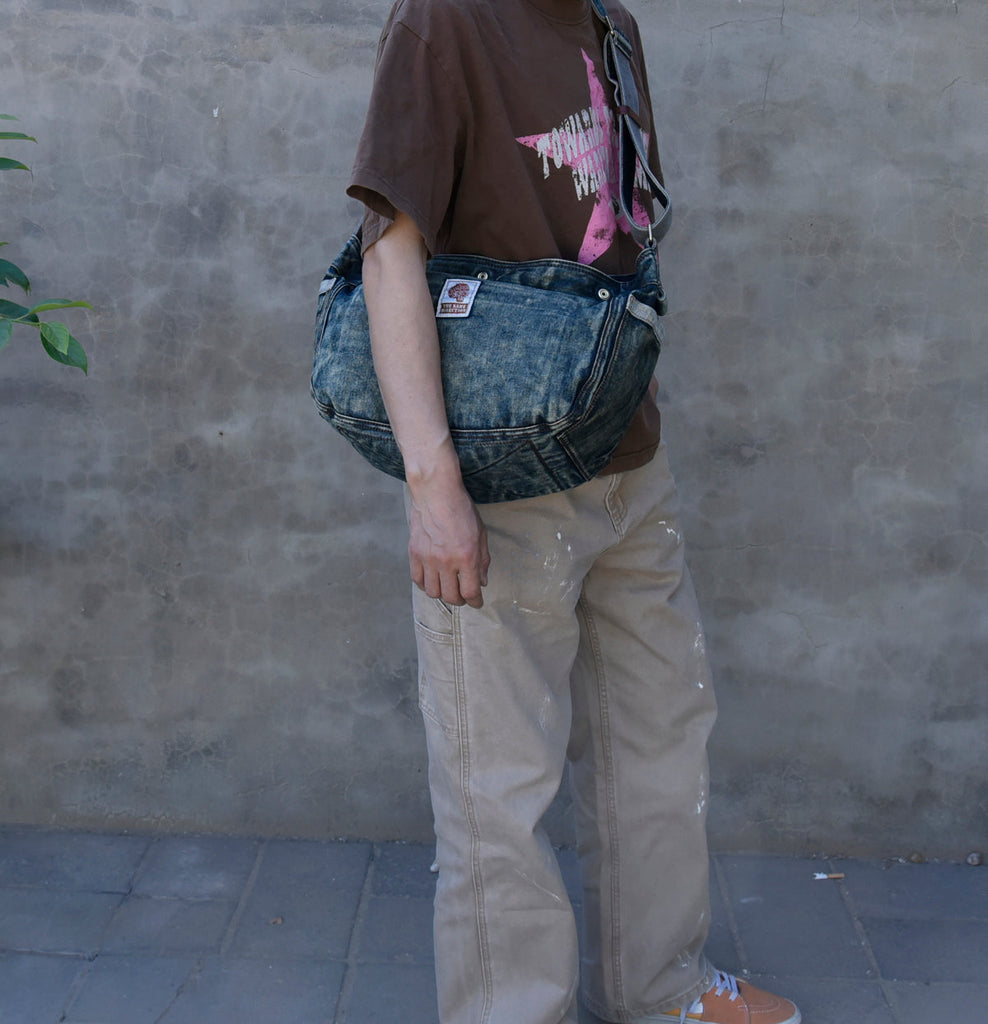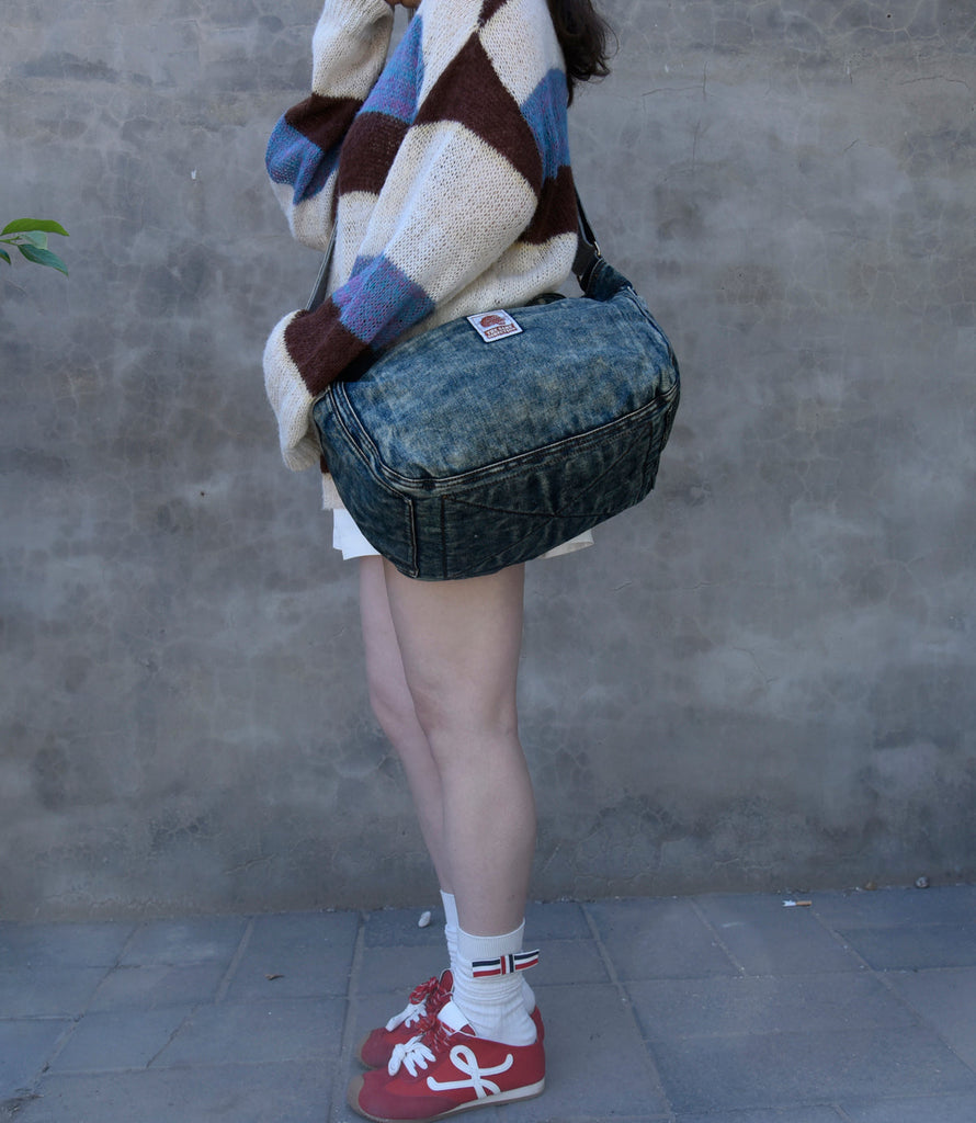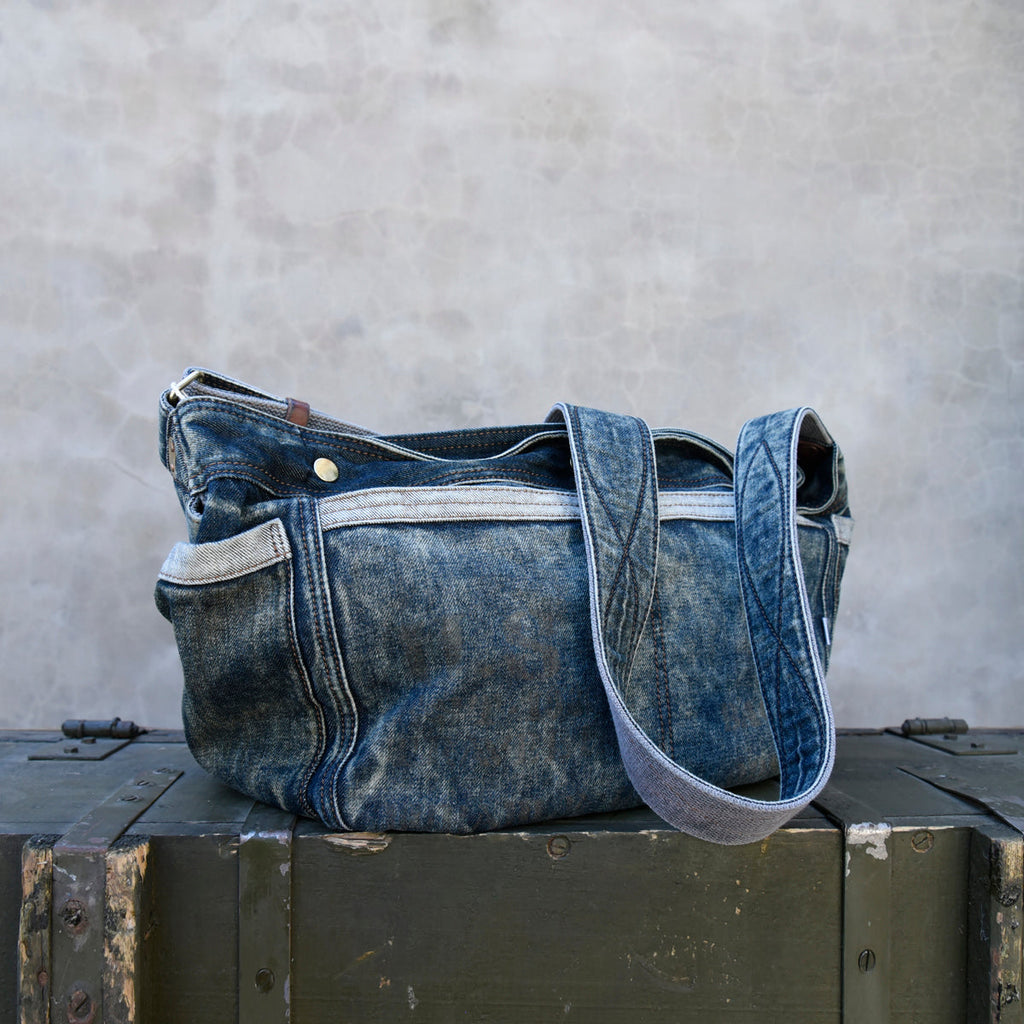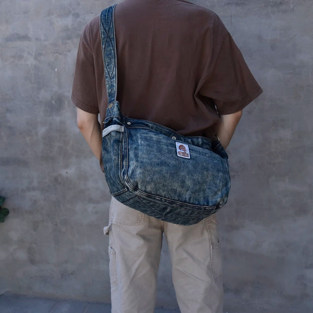 Design: Large Denim Crossbody Bag for Men Vintage Womens Large Jeans Shoulder Bag Blue Denim Messenger Bag