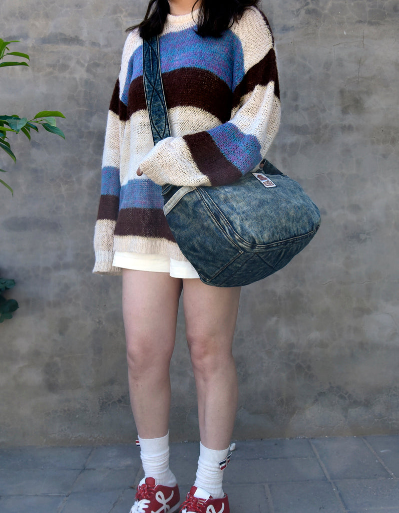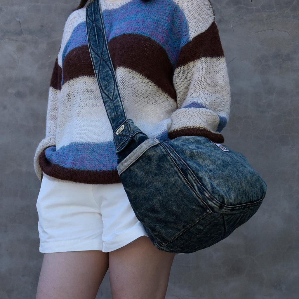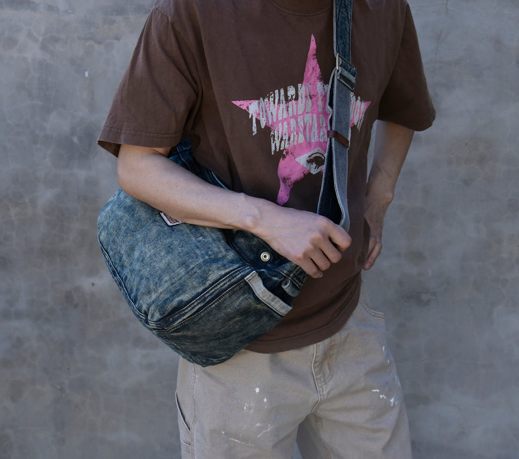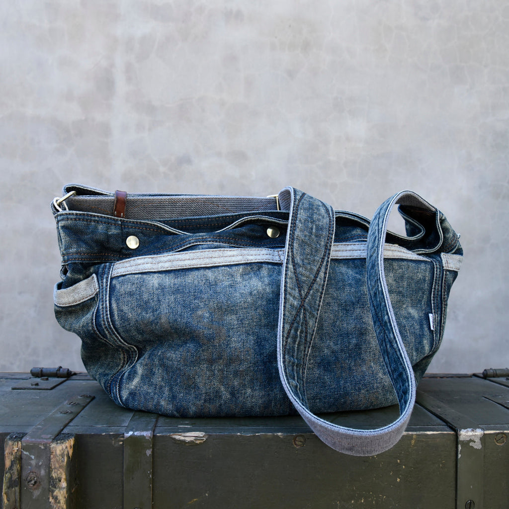Design: Large Denim Crossbody Bag for Men Vintage Womens Large Jeans Shoulder Bag Blue Denim Messenger Bag
