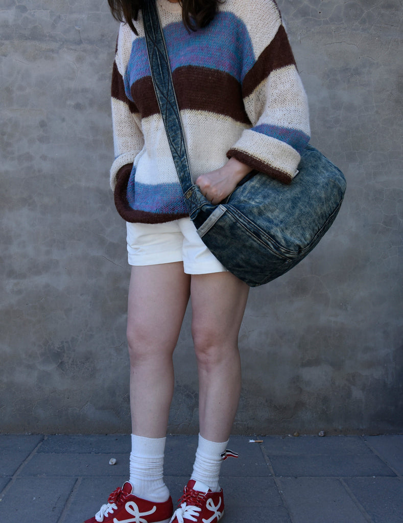 Style: Large Denim Crossbody Bag for Men Vintage Womens Large Jeans Shoulder Bag Blue Denim Messenger Bag