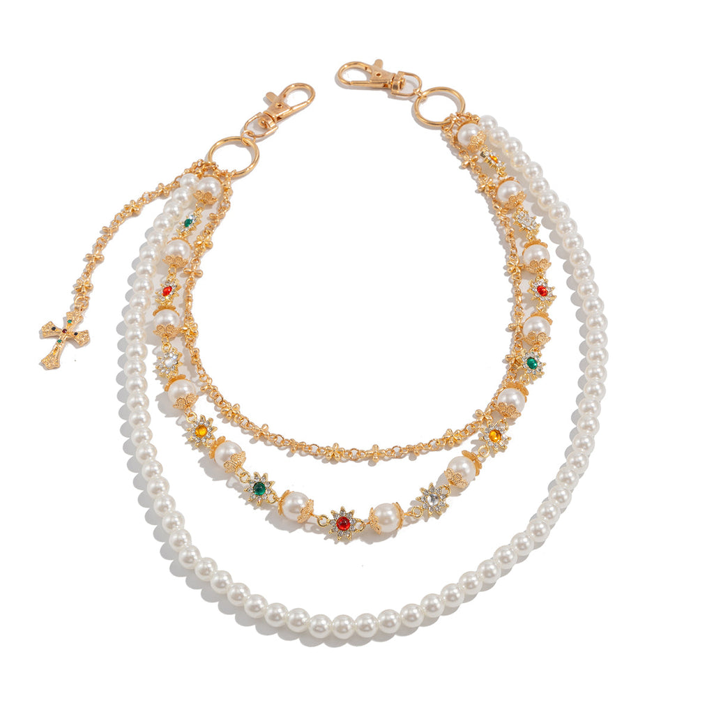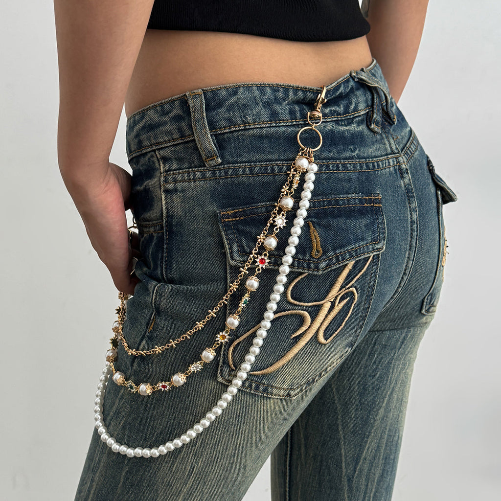 Crafted for the fashion-forward woman, this accessible yet sophisticated Triple Wallet Chainredefines how to incorporate statement pieces into everyday wear. The layered design allows you to showcase different aesthetics—emphasize the pearl strand for classic elegance, or highlight the gold elements for a bolder statement. Priced for accessibility without compromising on design, this piece serves as the perfect introduction to wallet chains while offering enough depth to satisfy seasoned accessory lovers.