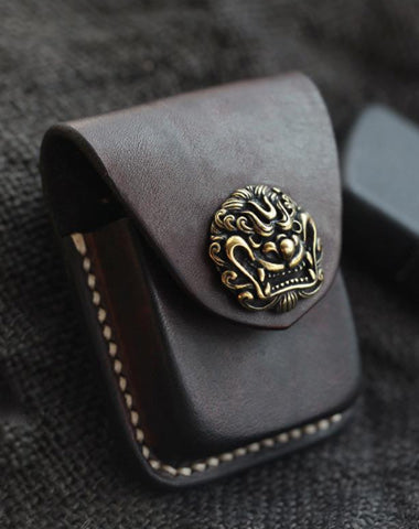 Design: Handmade Coffee Leather Mens Classic Zippo Lighter Case With Belt Loop Lighter Holder For Men