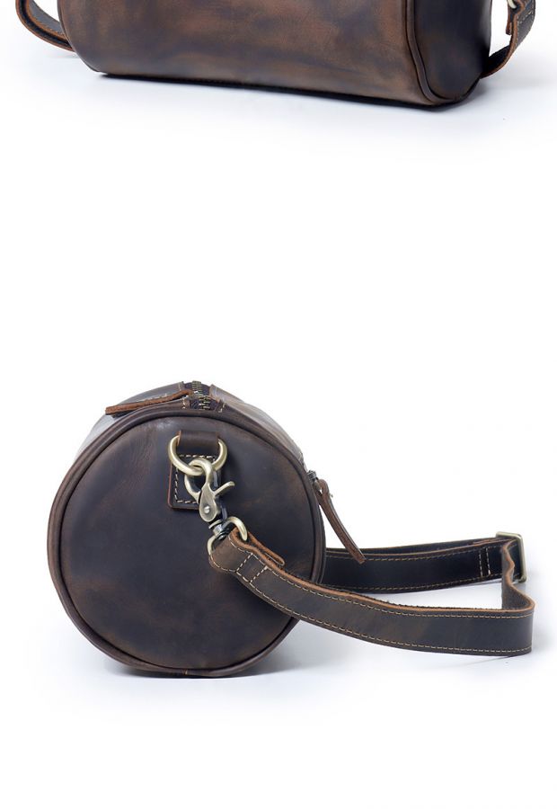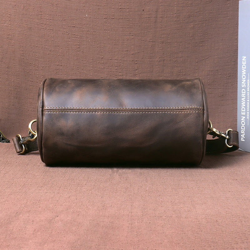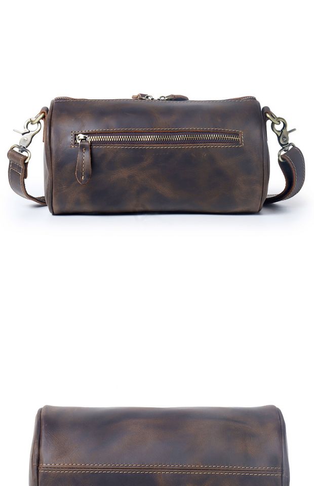 Design: Leather Cylinder Shoulder Bag Mens Barrel Crossbody Bag Leather Barrel Bags for Men