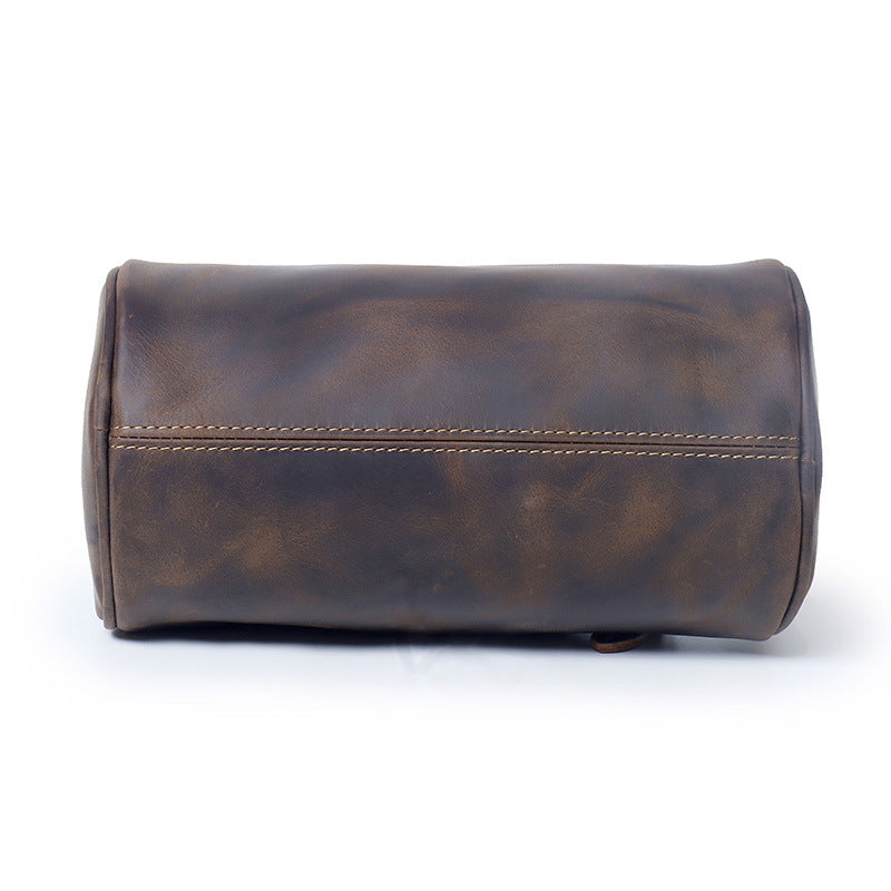 Elevate your everyday carry with our premium Leather Barrel Bag for Men �where rugged style meets modern functionality. Meticulously crafted from genuine Crazy Horse leather, this distinctive barrel crossbody bag develops a unique patina over time, ensuring your accessory ages with character and becomes uniquely yours.