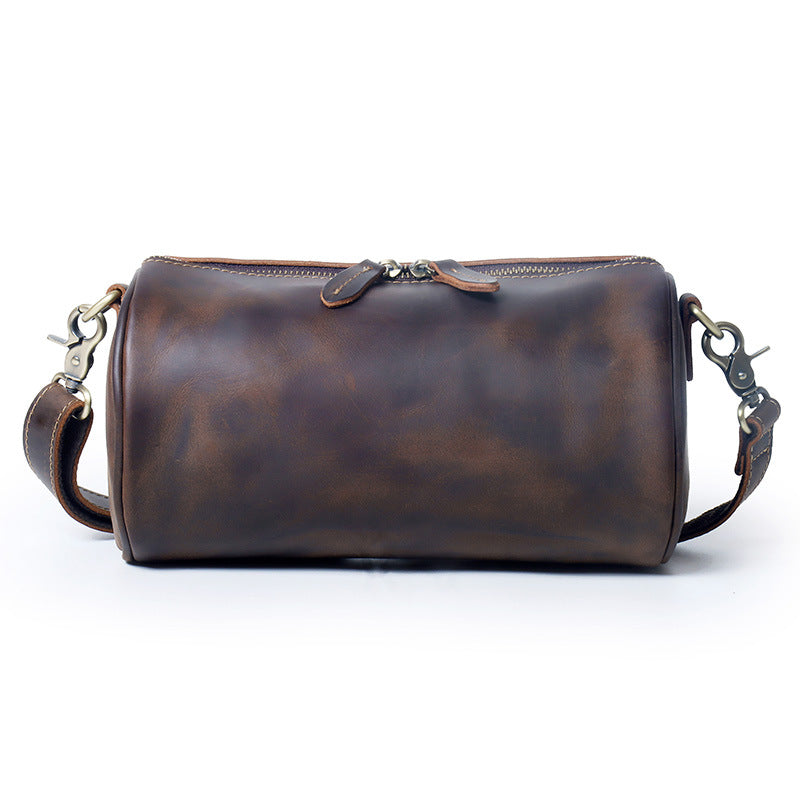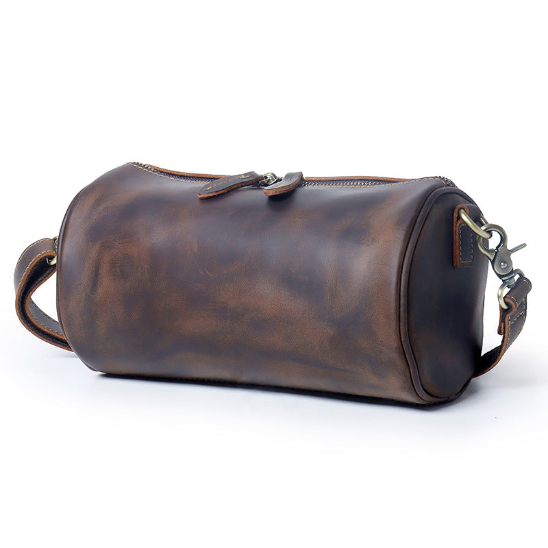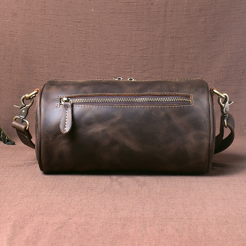 Design: Leather Cylinder Shoulder Bag Mens Barrel Crossbody Bag Leather Barrel Bags for Men