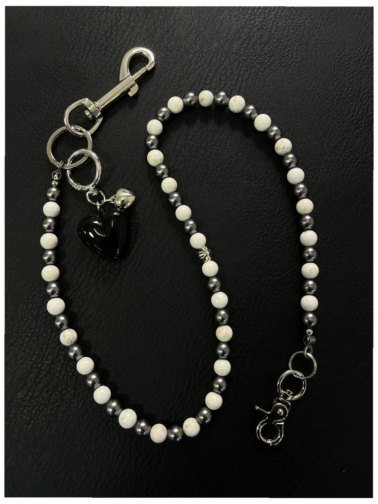 Elegant White Ball Wallet Chain - Howlite Stone & Heart Charm Design