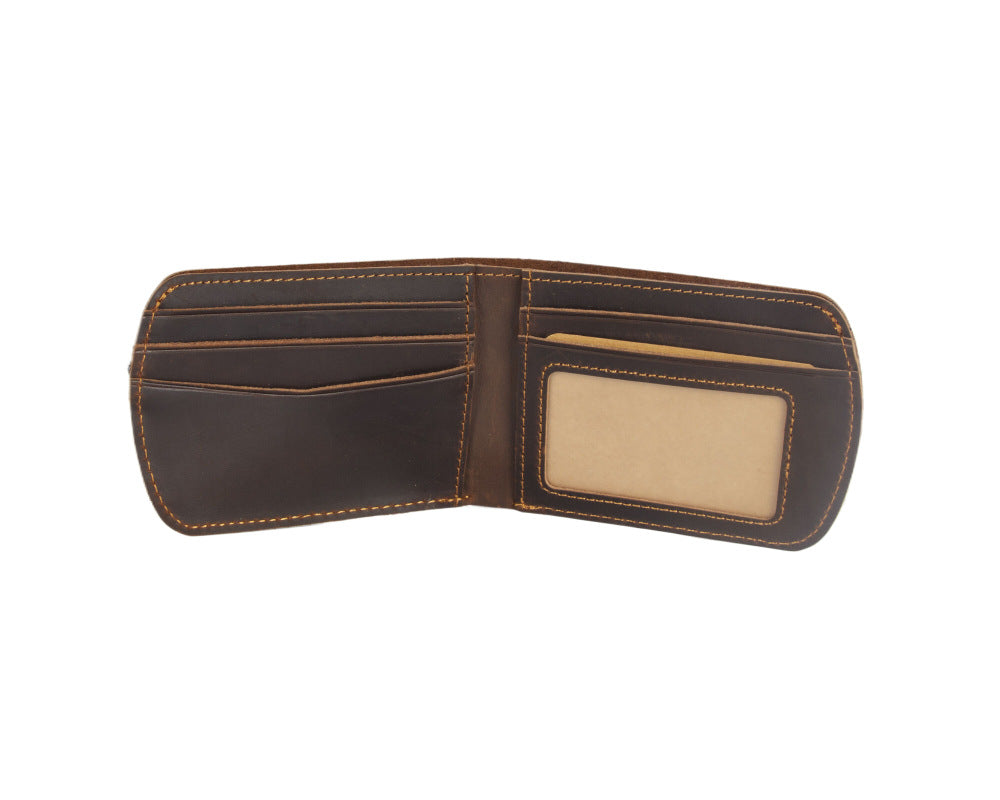 Discover the perfect blend of minimalist design and practical functionality with our Men's Billfold Wallet with ID Window, a thoughtfully crafted accessory for those who value streamlined organization without sacrificing style. This distinctive Brown Leather ID Billfold Wallet features a uniquely low profile, measuring just slightly taller than standard banknotes at 11.5cm x 8cm x 1cm, making it an ideal choice for anyone seeking a slim, pocket-friendly wallet. Crafted from premium full-grain crazy horse leather and available in two rich, masculine shades—Coffee Brown and Classic Brown—this refined Men's Billfold Wallet with ID Window combines vintage aesthetics with modern efficiency.
