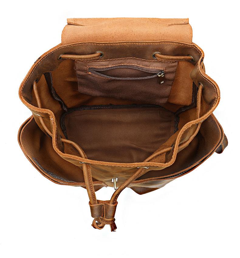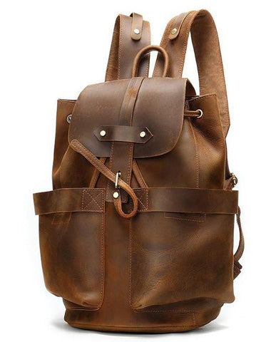 Design: Vintage Leather Men's Barrel Backpack Travel Backpack Brown College Backpack For MenOverview: