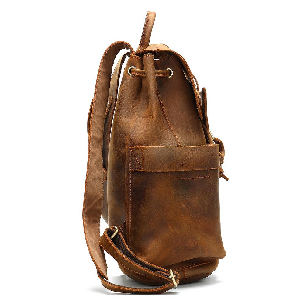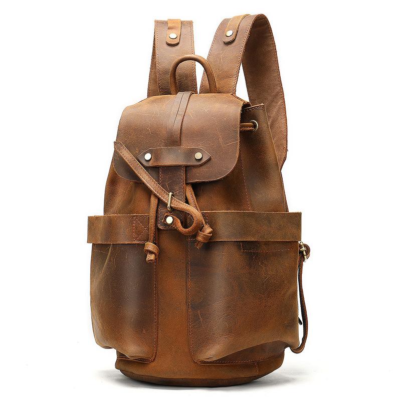 Design: Vintage Leather Men's Barrel Backpack Travel Backpack Brown College Backpack For Men
