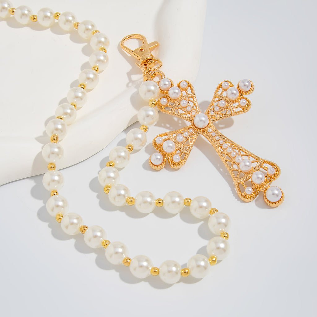 Elegant Pearl & Cross Wallet Chain | Single-Strand Statement Piece for Women 2026