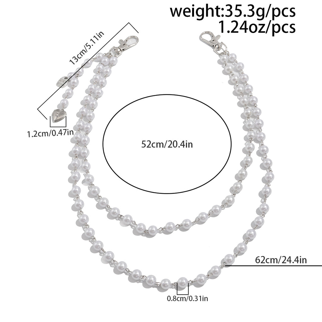 Discover the perfect introduction to alternative accessories with our enchanting Pearl Wallet Chain, a beautifully crafted piece designed specifically for fashion-forward women. This exquisite Women Wallet Chain features a graceful dual-layer design with 62cm and 52cm strands of lustrous faux pearls, creating a captivating cascading effect. The charming addition of a shorter chain with a delicate heart-shaped pendant near the clasp adds a touch of romantic femininity to this versatile Ball Wallet Chain, making it an ideal choice for those new to wallet chains or seasoned enthusiasts alike.