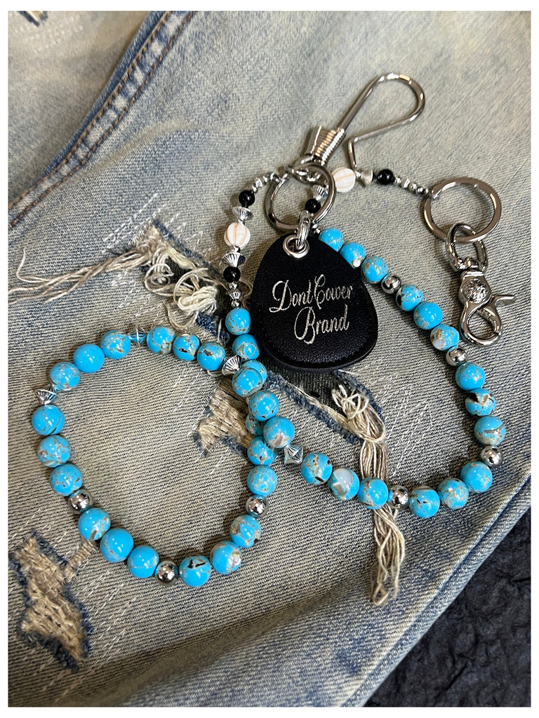 Style: Blue Green Ball Wallet Chain Ball Pants Chain Turquoise Stone Beaded