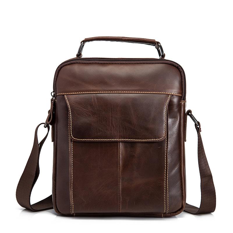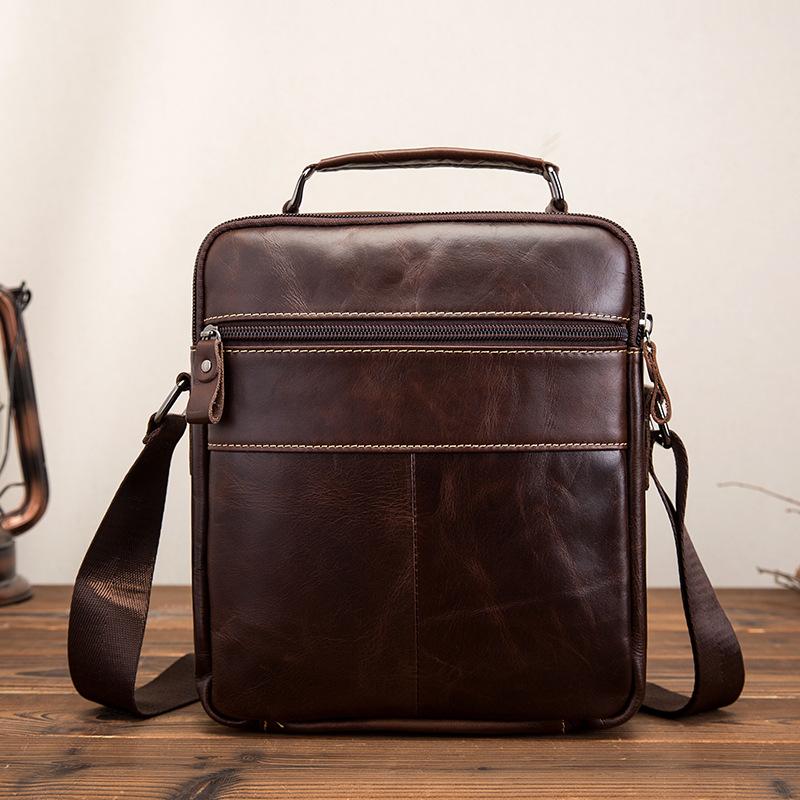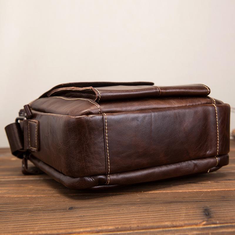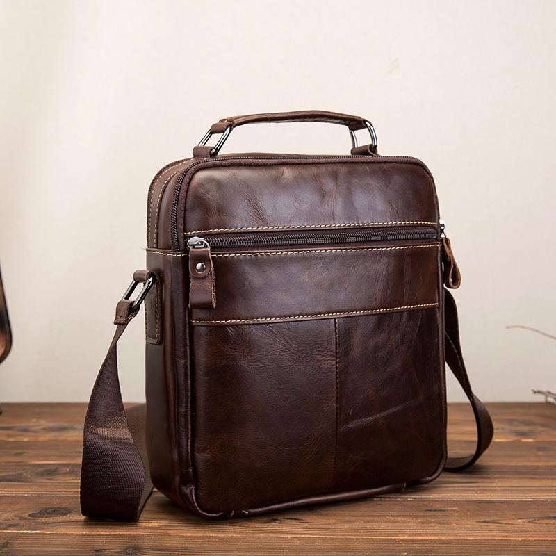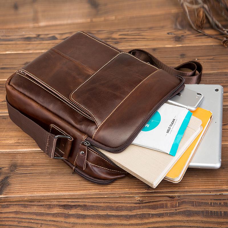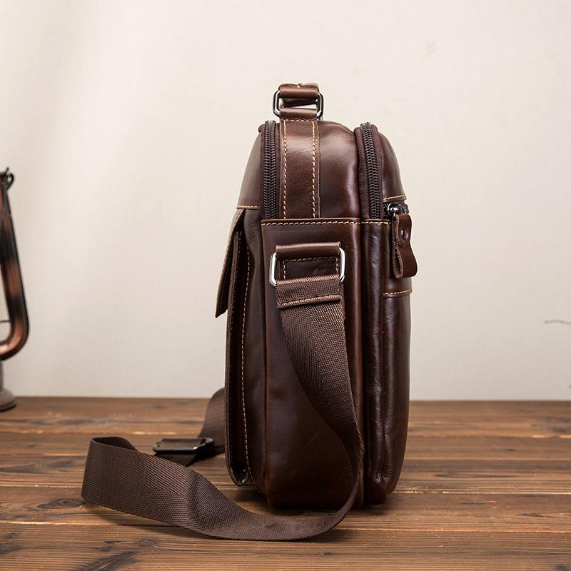 Design: Cool Brown Leather Men's Small Vertical Messenger Bag Brown Small Side Bag For Men