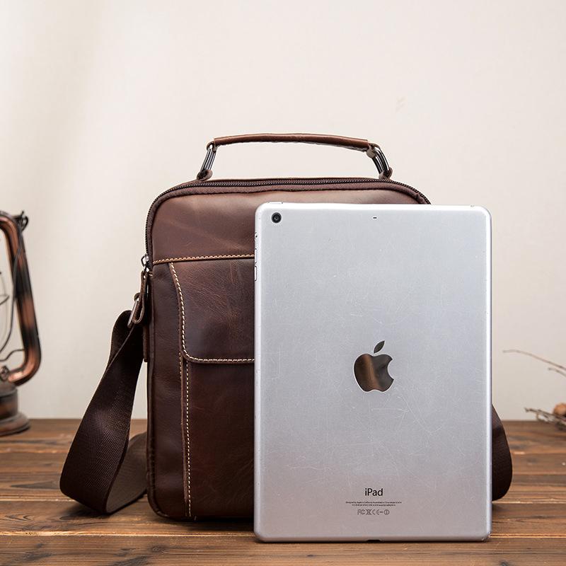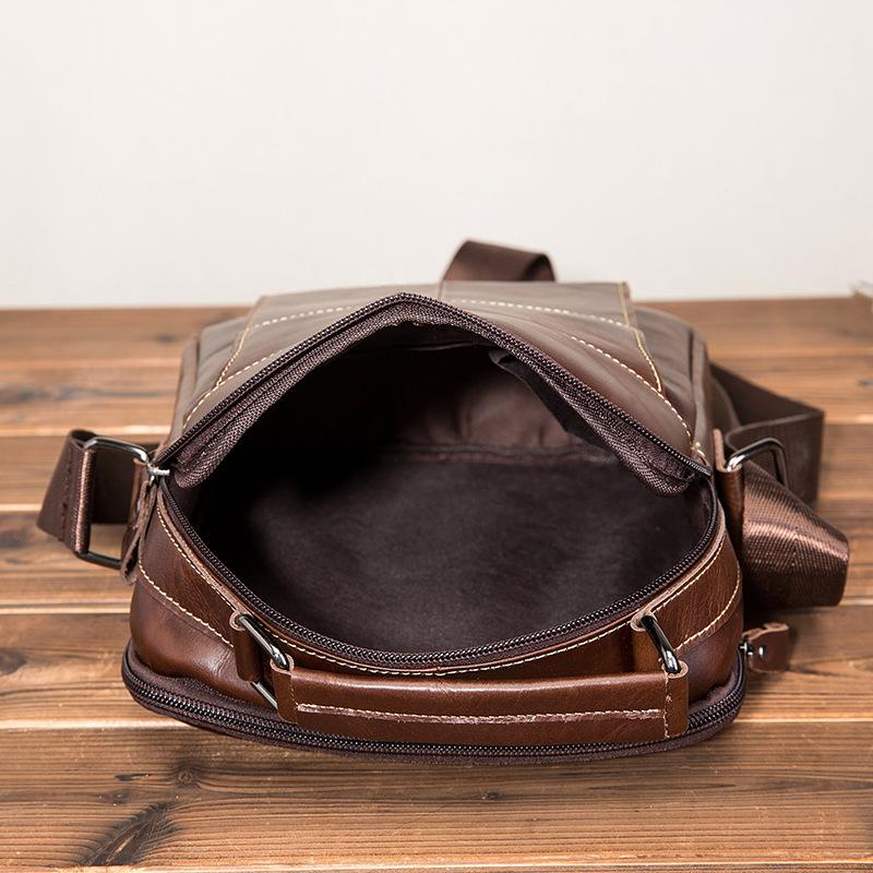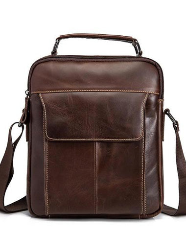 Design: Cool Brown Leather Men's Small Vertical Messenger Bag Brown Small Side Bag For MenOverview: