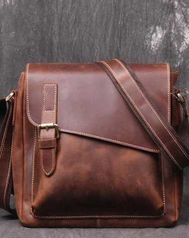 Design: Vintage Leather Men's Small Side Bag Vertical Messenger Bag Shoulder Bag For Men