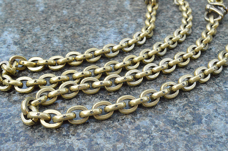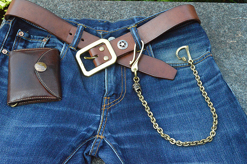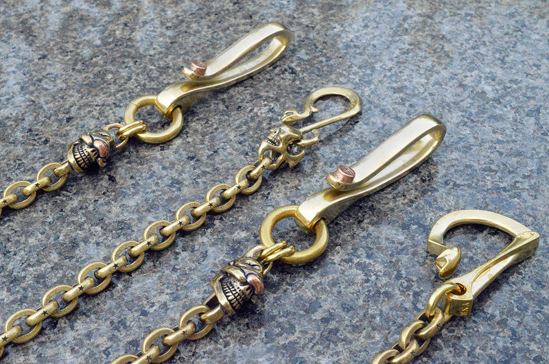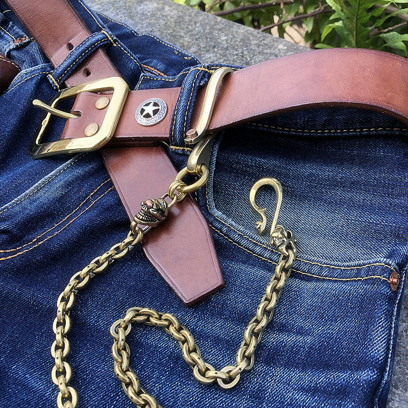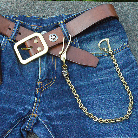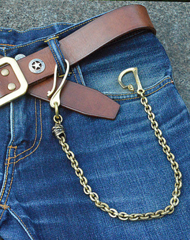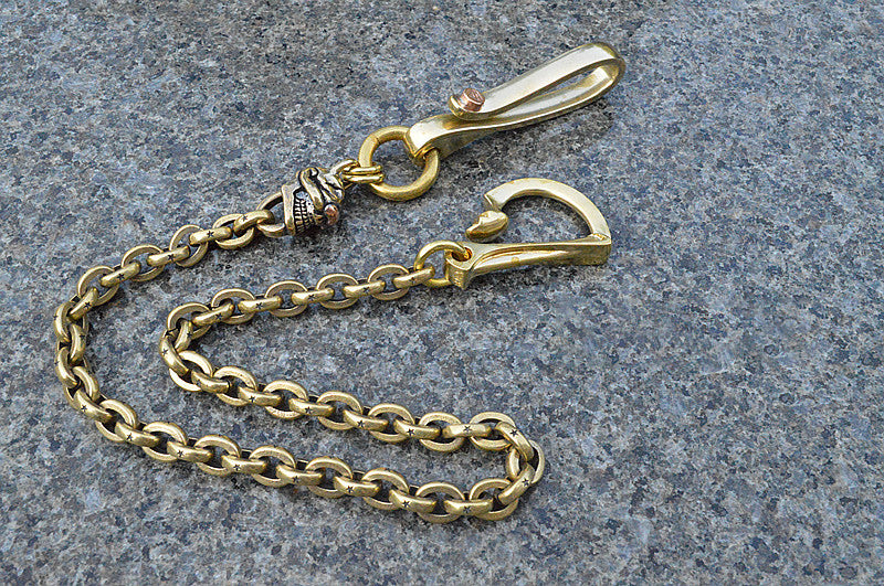 Both ends of the chain are equipped with sturdy hooks, ensuring that it can be easily attached to your wallet and belt loop. These hooks are designed for durability and ease of use, providing a reliable connection that won't easily come undone. The brass construction not only offers a timeless, rugged look but also ensures longevity, as brass is resistant to rust and corrosion.