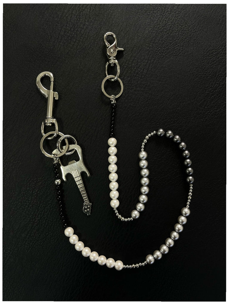Elevate your style with our revolutionary Ball Wallet Chain, a masterful fusion of texture, tone, and rock-and-roll spirit. This 78cm statement piece features an artful composition of six distinct bead styles in black, white, and iron-gray shades—crafted from synthetic alloys, pearls, and metallic finishes. The carefully curated mix of sizes and materials creates visual depth, while the signature guitar charm near the belt clip celebrates music culture. This beaded Wallet Chain redefines accessory design, offering a bold yet versatile piece for authentic self-expression.