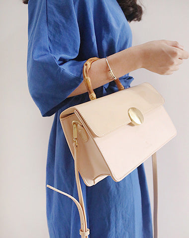 Beige Leather Women Handbag Shoulder Bag Work Bag For Women