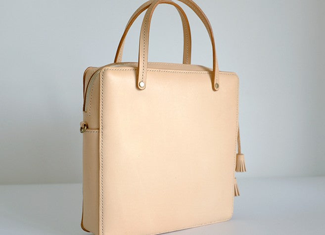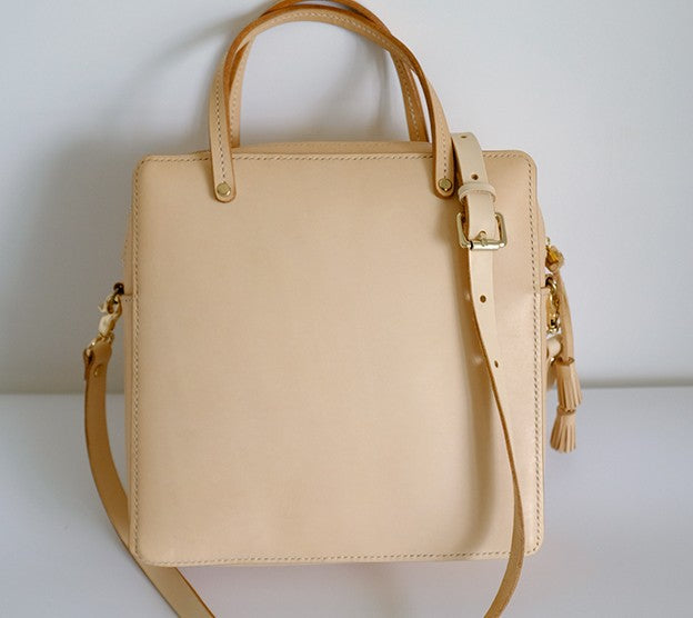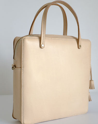 Style: Handmade Leather Beige Womens Square Box Handbag Shoulder Bag Purse for Women