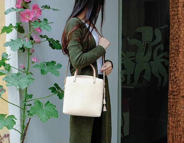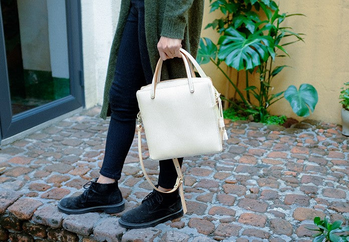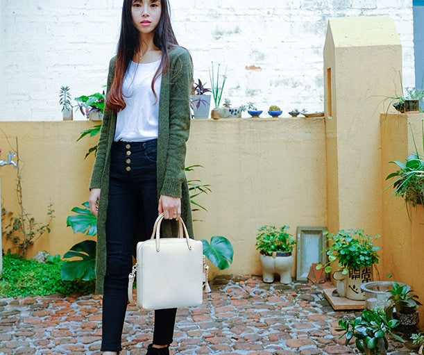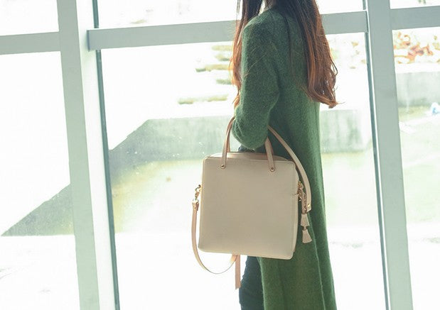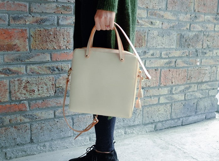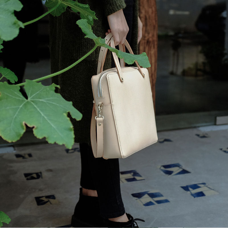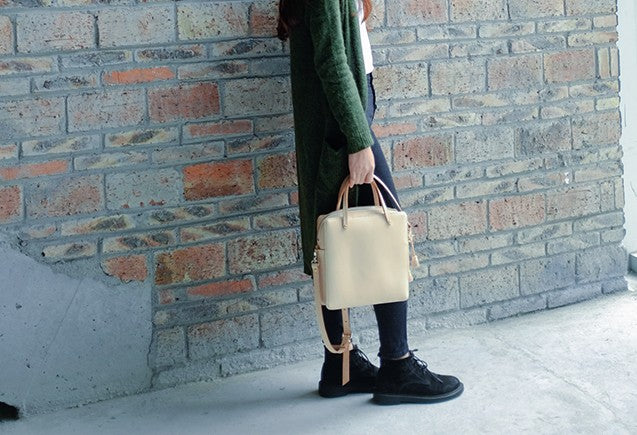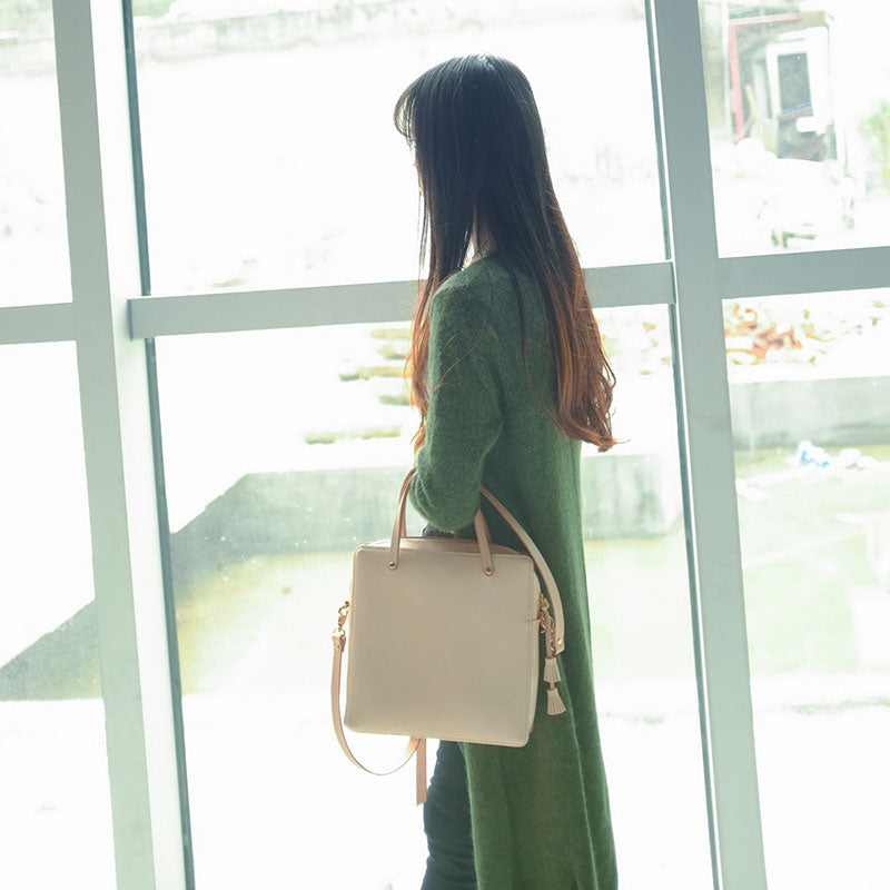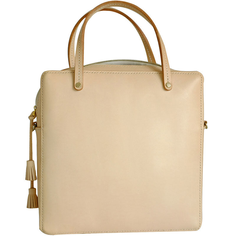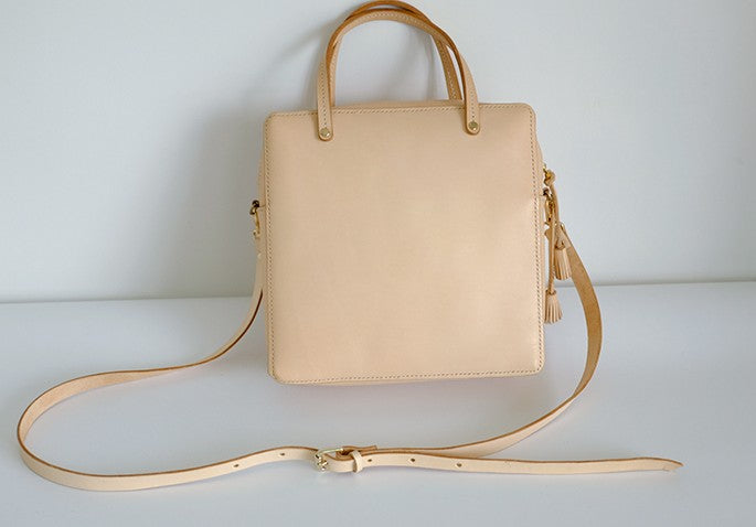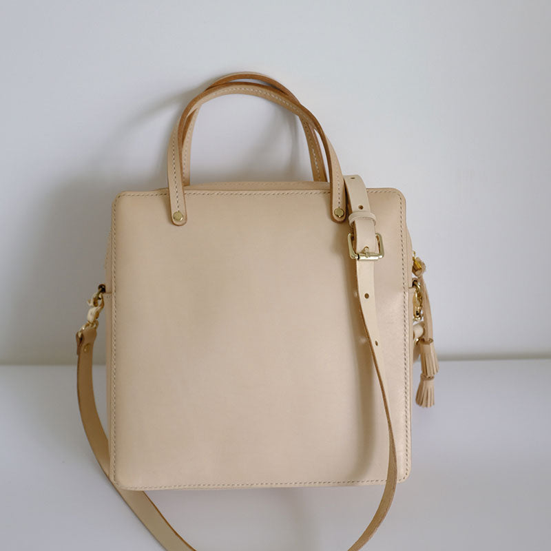 Design: Handmade Leather Beige Womens Square Box Handbag Shoulder Bag Purse for Women