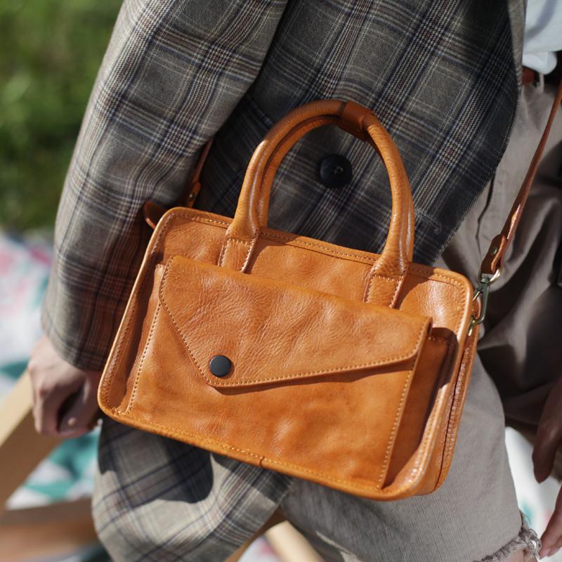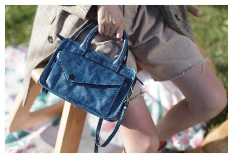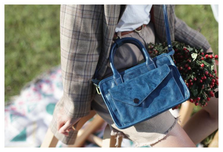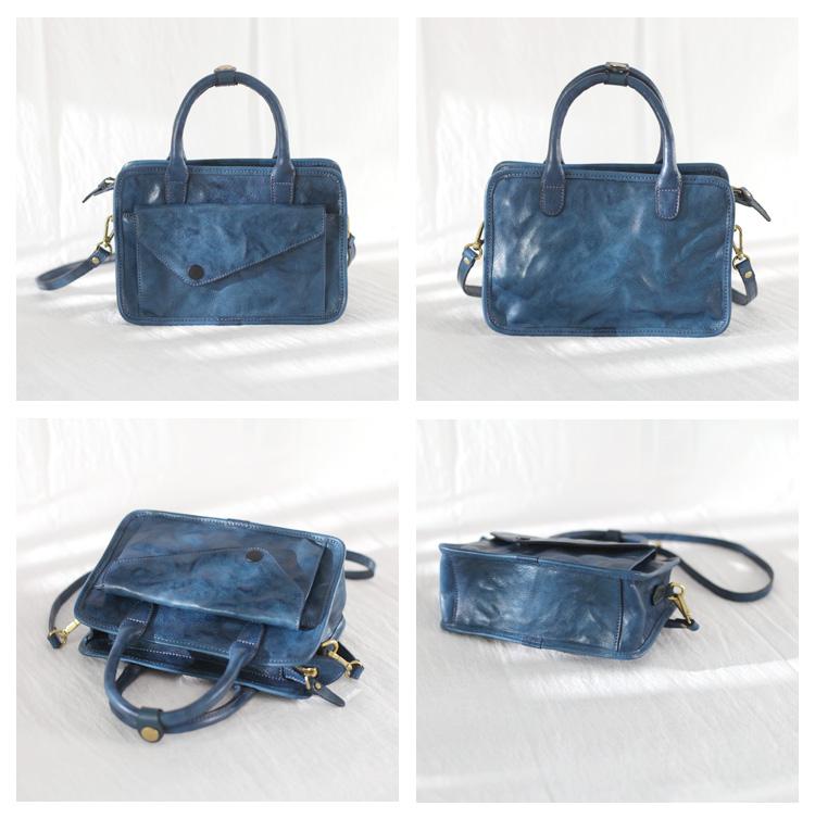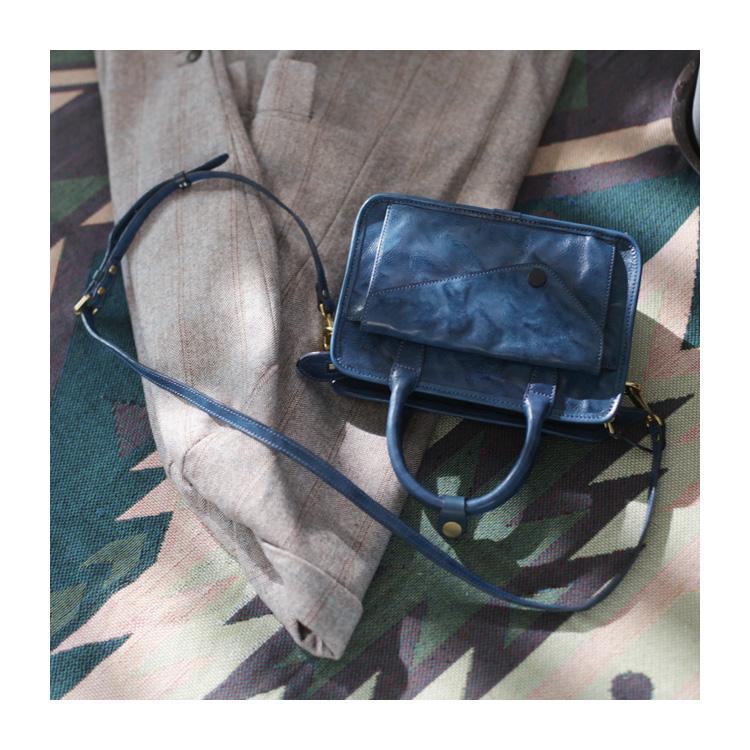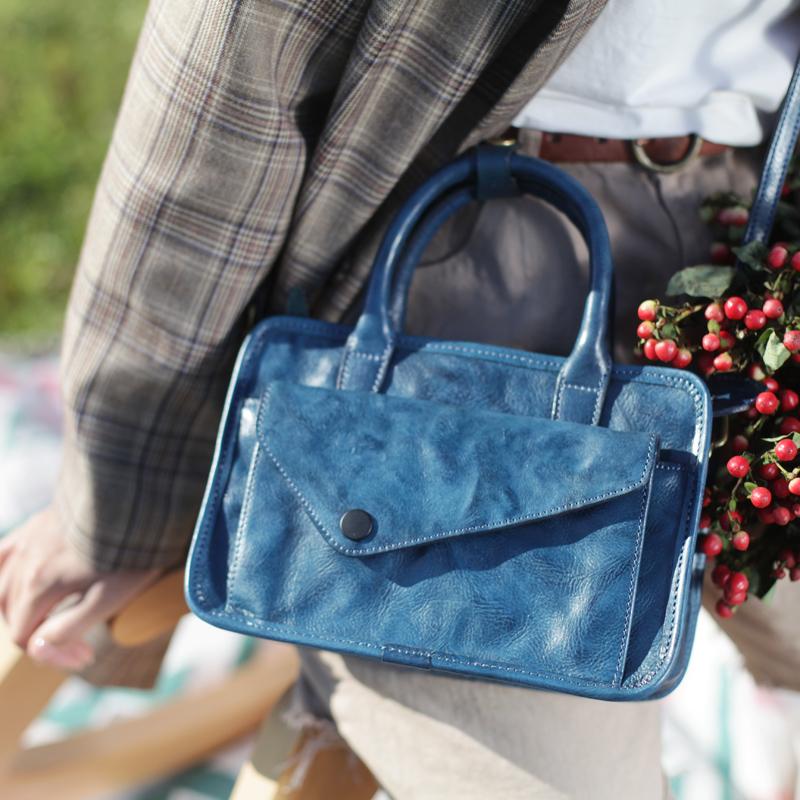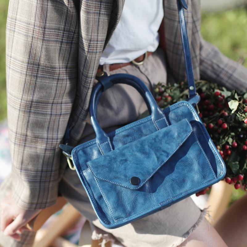In Stock: 3-5 Days to Process Orders Include: A Bag Material: Cowhide Color: Tan, Blue Dimensions: Inches: Height 6.7" x Width 9.5" x Depth 3.5" cm: Height 17cm x Width 24cm x Depth 9cm Adjustable Strap: Length 51" Weight: 0.6kg Slots: 1 main slot, 1 inner slot