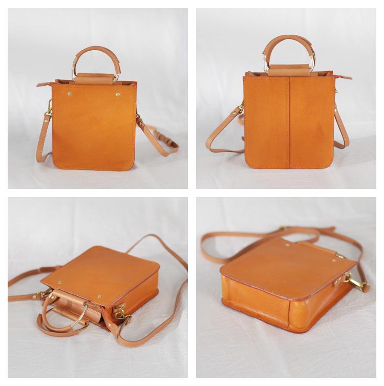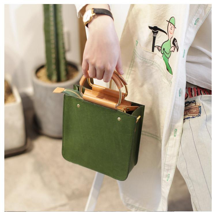 In Stock: 3-5 Days to Process Orders Include: A Bag Material: Cowhide Leather Color: Tan, Green Dimensions: Inches: Height 7.5" x Width 7.1" x Depth 3.5" cm: Height 19cm x Width 18cm x Depth 9m Shoulder Strap: Length 49" Weight: 0.6kg Slots: 1 main slot, 1 inner slot